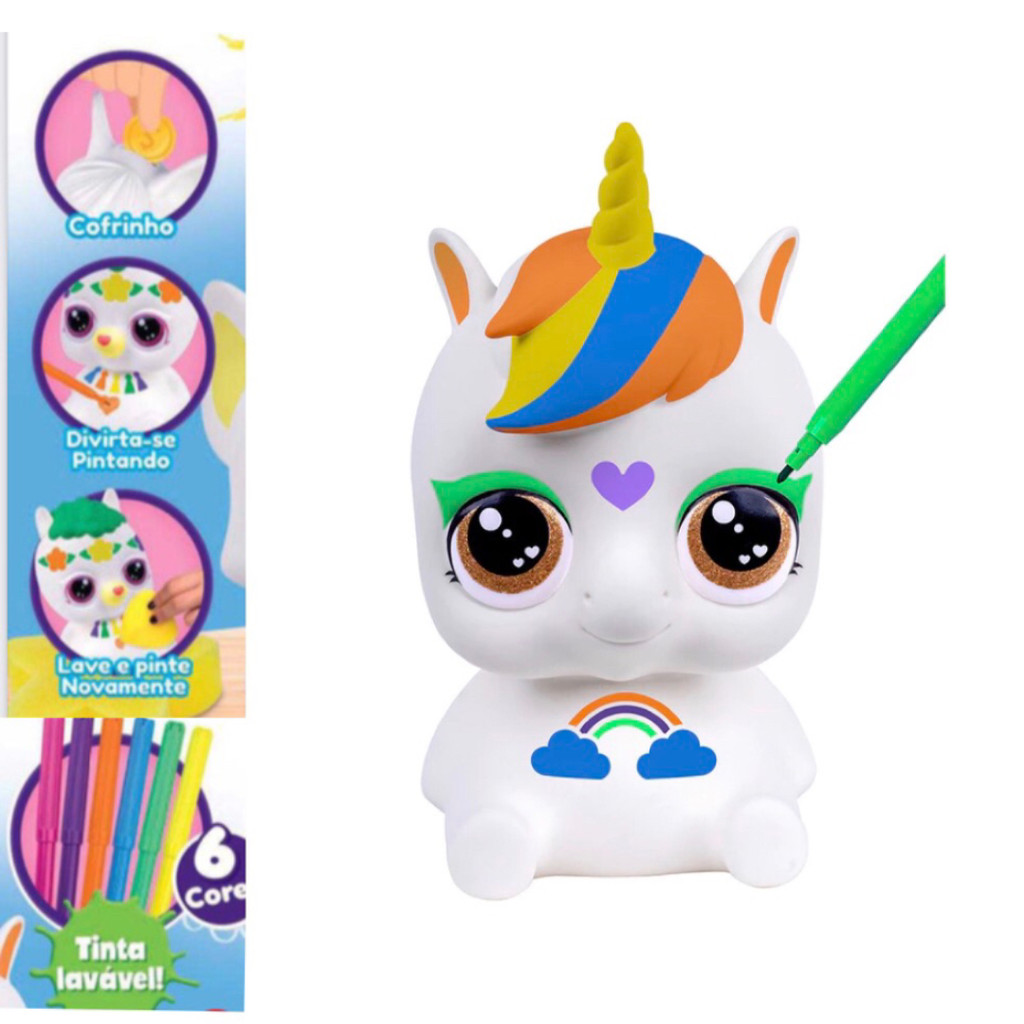 Brinquedo Cofre Mundo Colorido Unicórnio Para Pintar Cor Branco