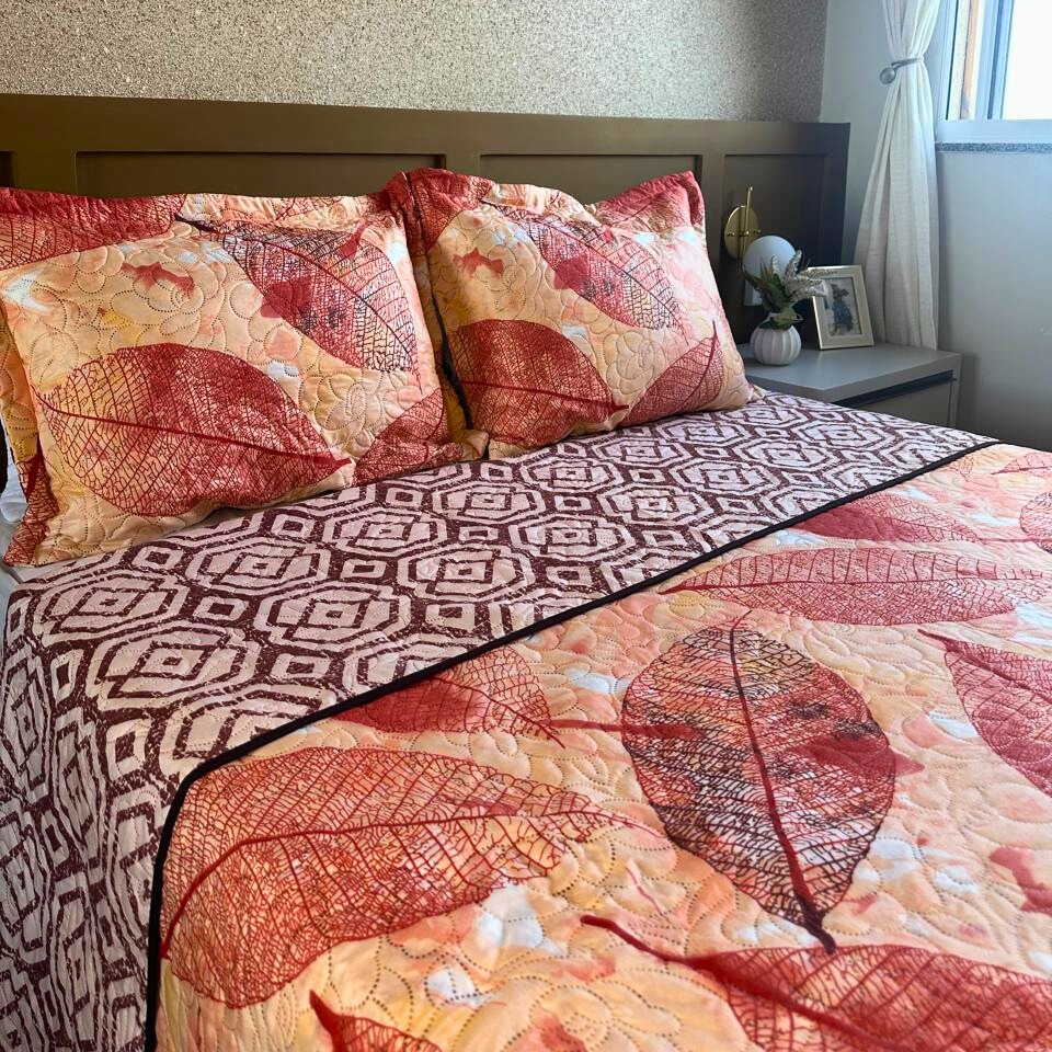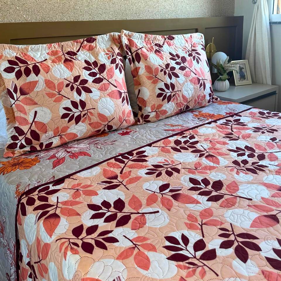 Kit Colcha Cobre Leito Bouti Casal Dupla Face com Viés