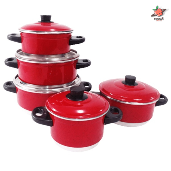 Jogo de Panelas 5 Peças Tampa de Alumínio Vermelha maçãSTORE