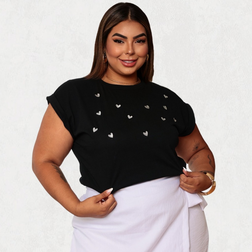 Blusa Feminina Plus Size Manga Japonesa Estampas e Bordados Variados 100% Algodão