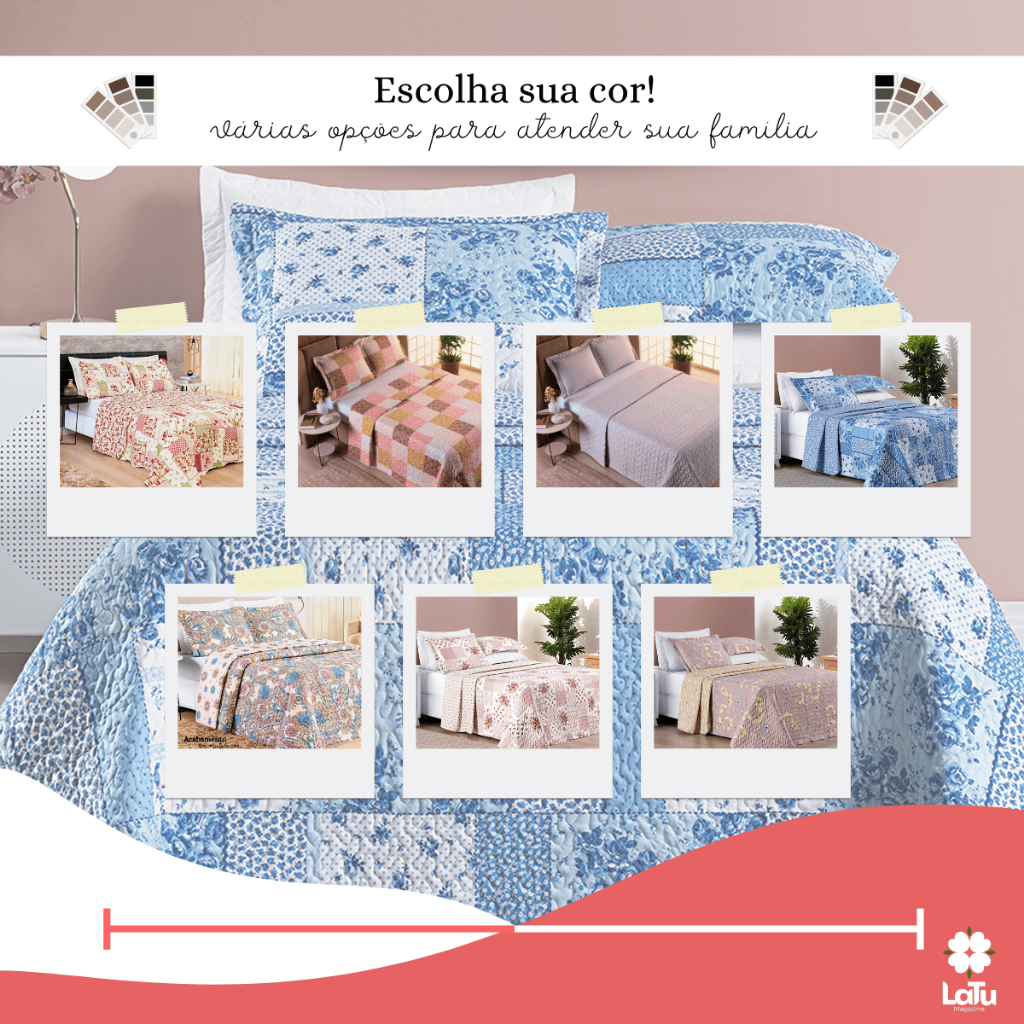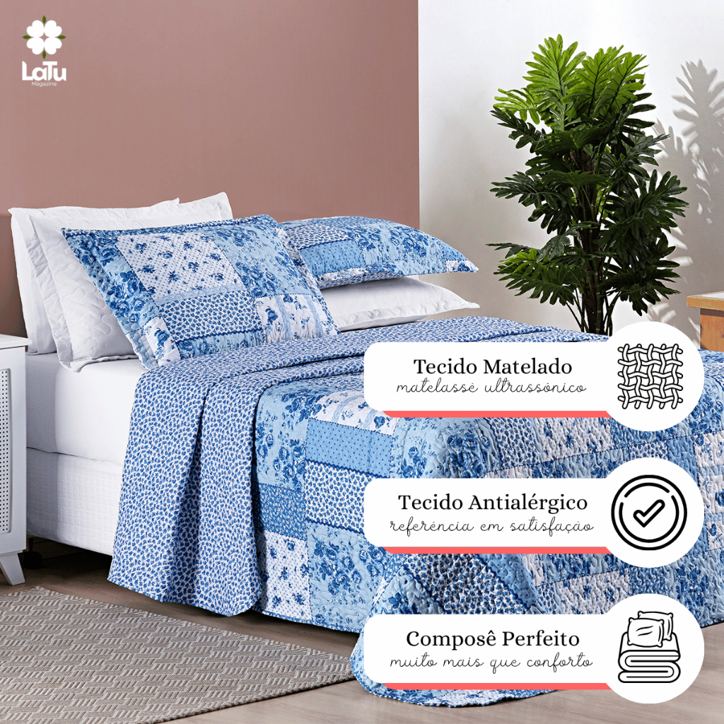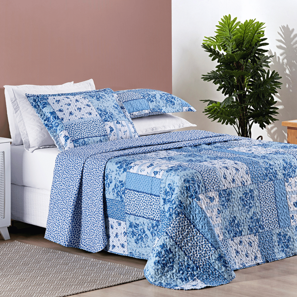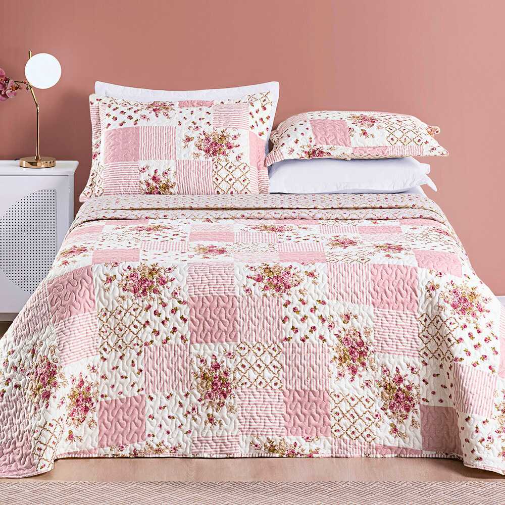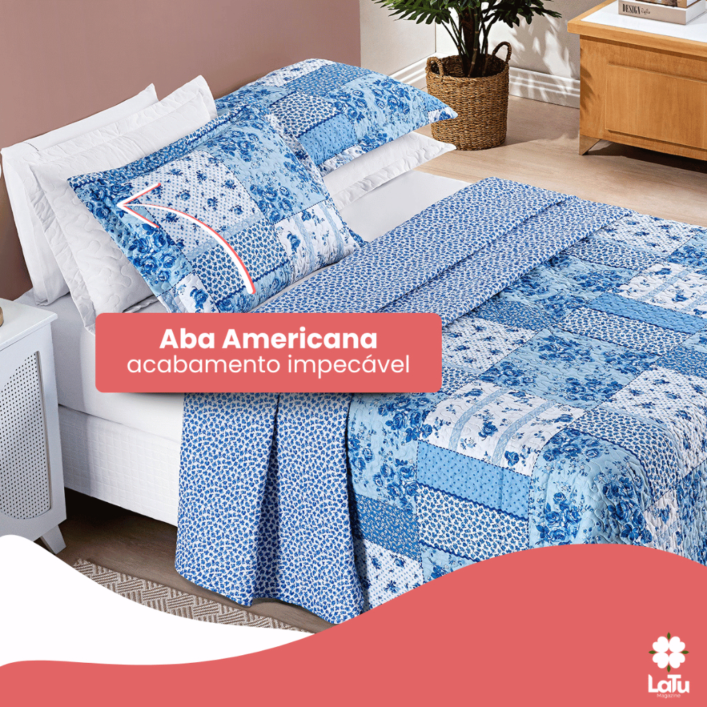 Jogo Colcha 3 Peças Casal/Queen/King Estampada Dupla Face Bouti Matelado Cobre Leito Aba Americana