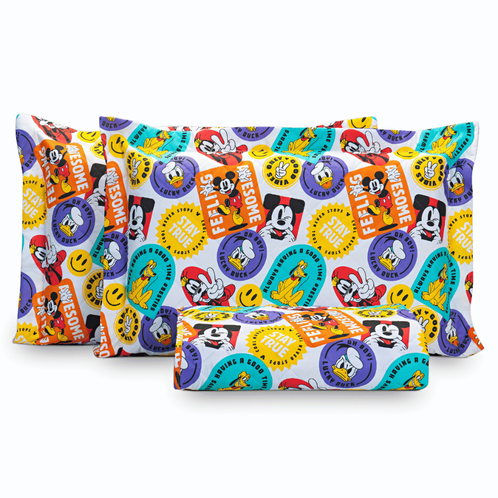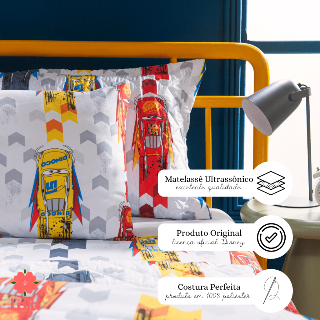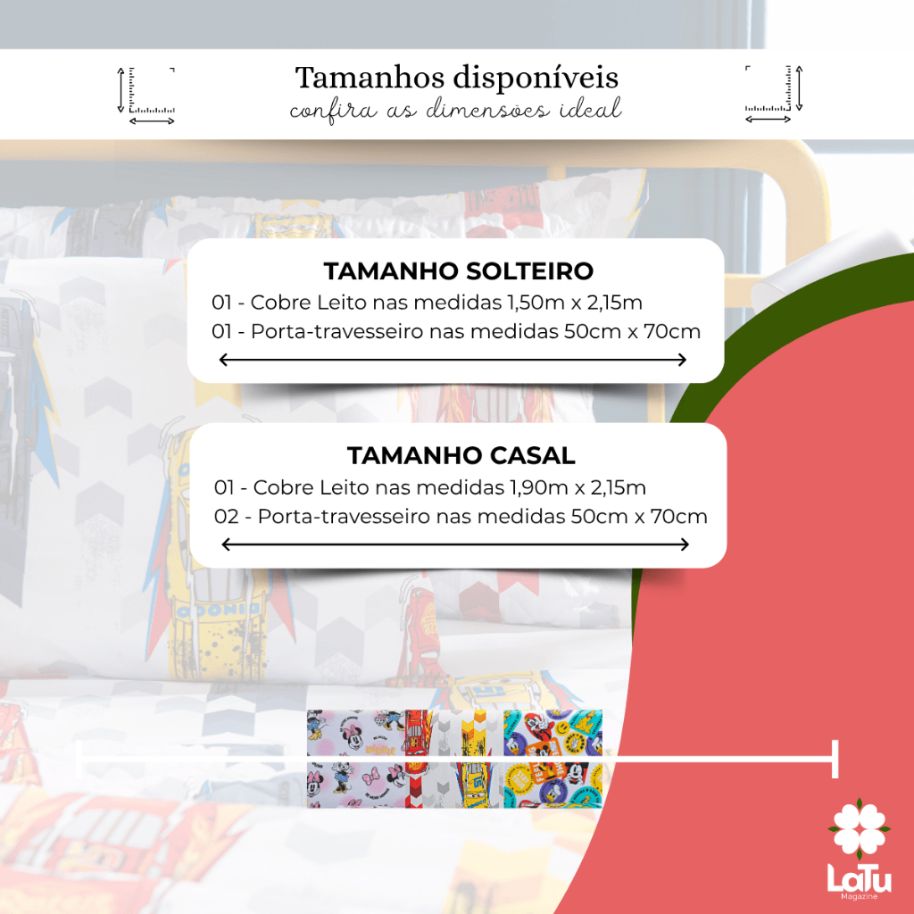 Cobre leito Disney Oficial Solteiro/Casal Carros Mickey Friends Minnie More - Com Porta Travesseiro