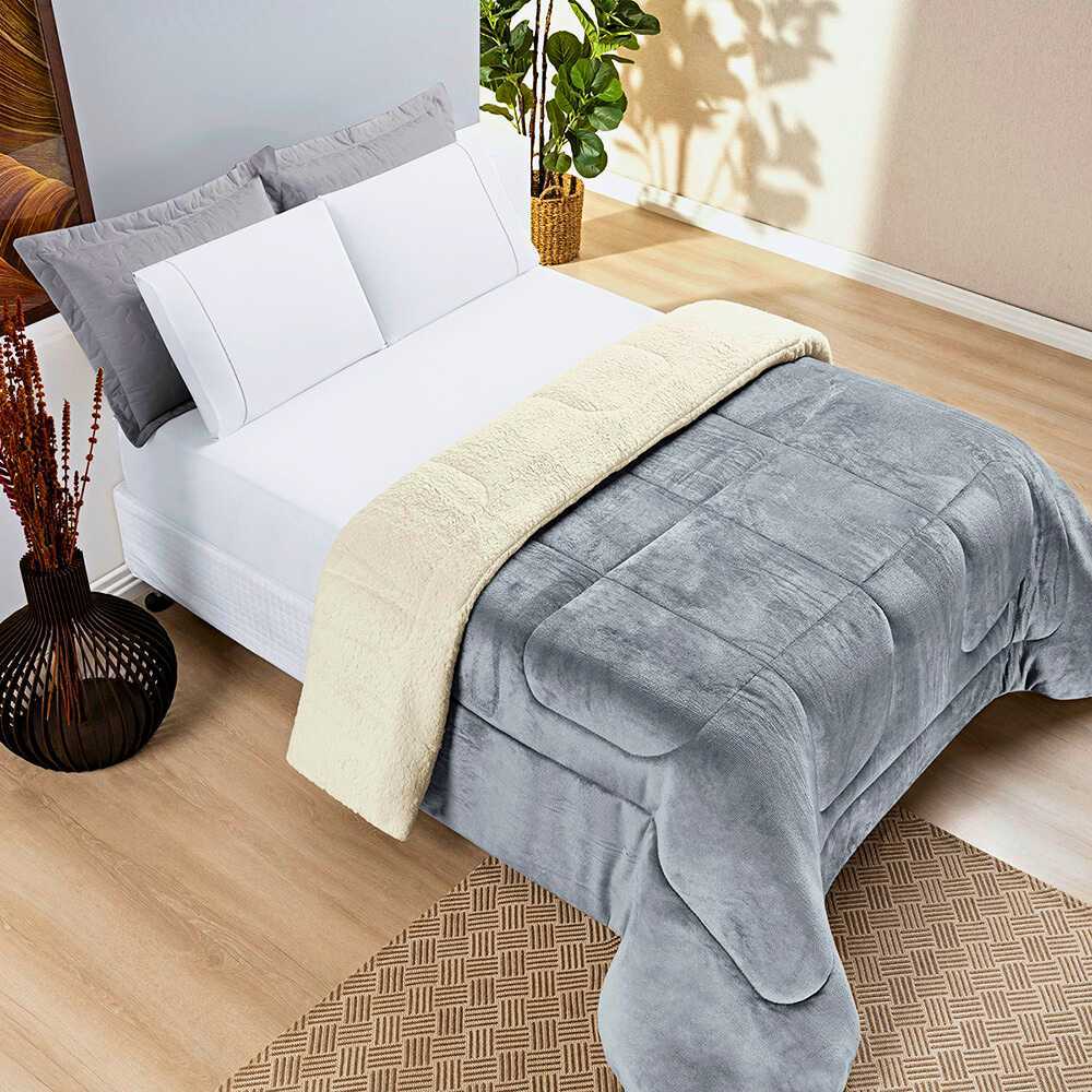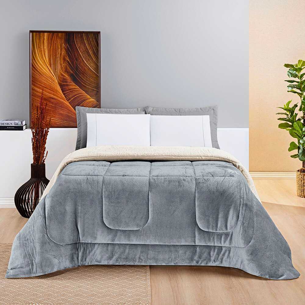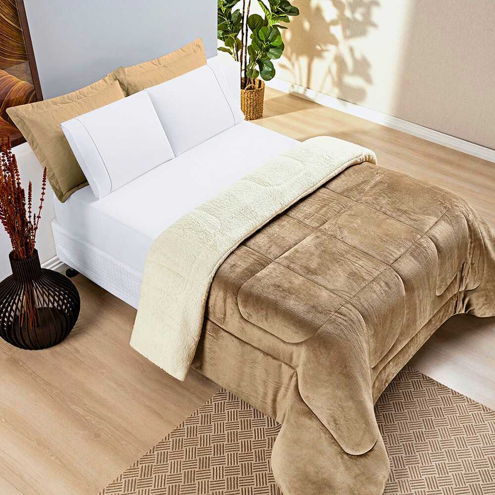 Coberdrom Cobertor Queen Size 2,40cm x 2,20cm Manta Flannel Tecido Sherpa - Macio Dupla Face