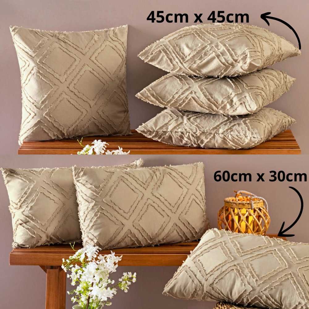 Kit 4 Capas de Almofadas Percal 300 Fios Detalhes 3D 45cm x 45cm e 60cm x 30cm Com Zíper - Aveline