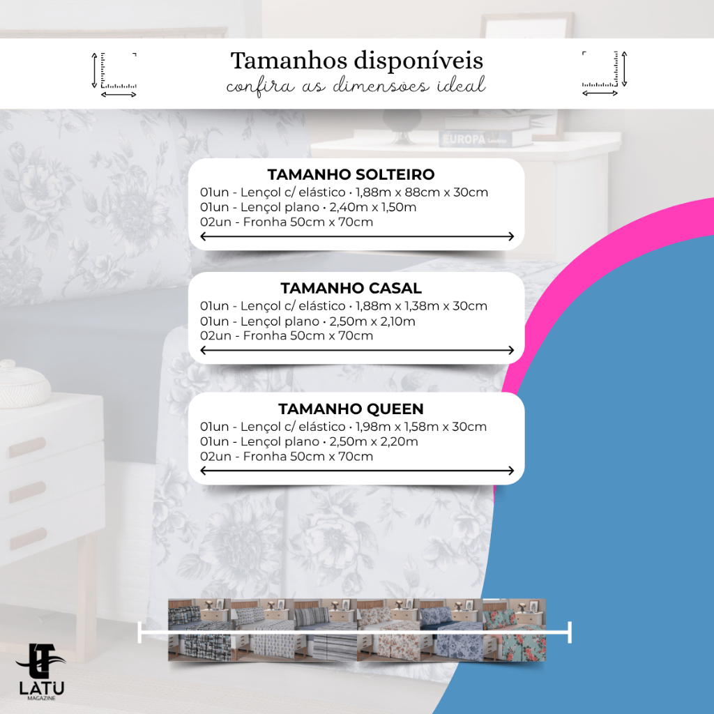 Jogo de Lençol 4 Peças 400 Fios Hypercal - Casal Padrão - 3 Estampas Florias e 3 Geométricas