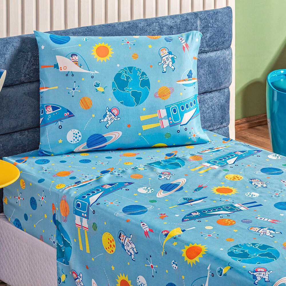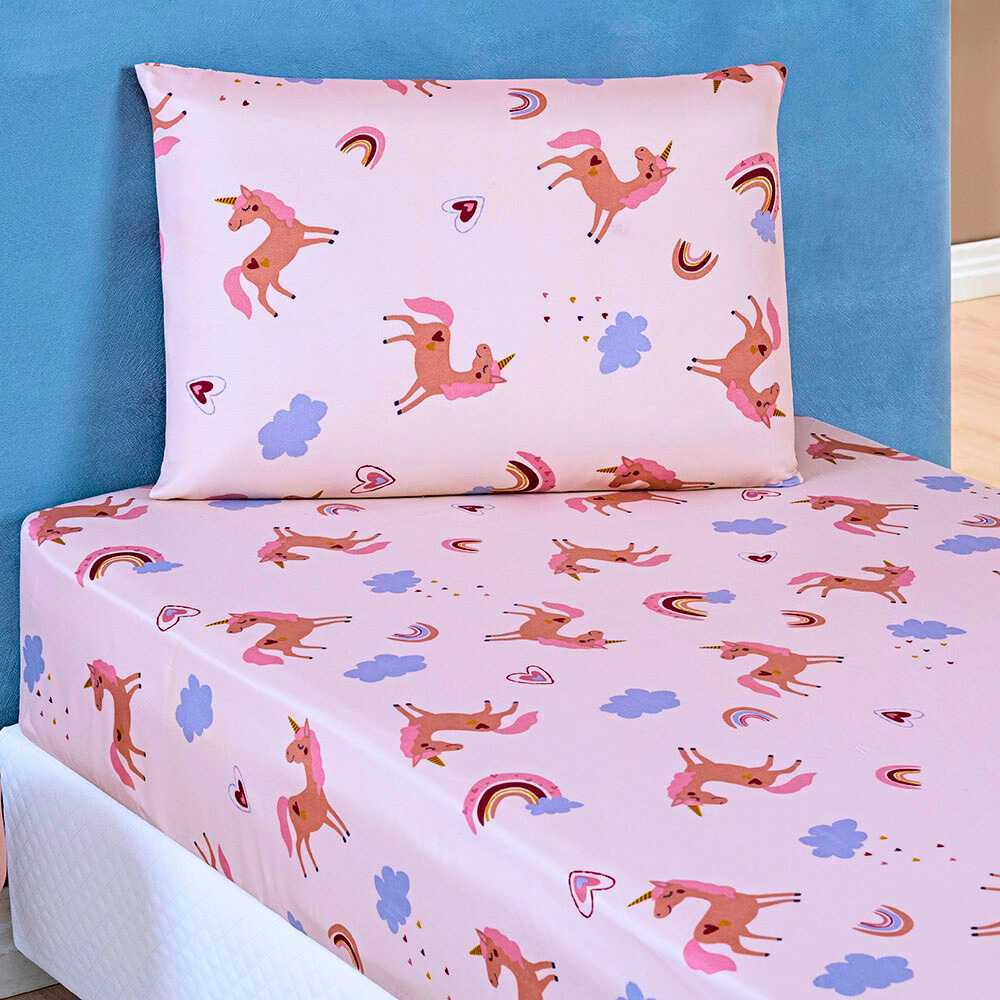 Jogo de Lençol 2 Peças Solteiro Infantil Para Menino e Menina Bailarina-Dino-Astronauta-Unicórnio