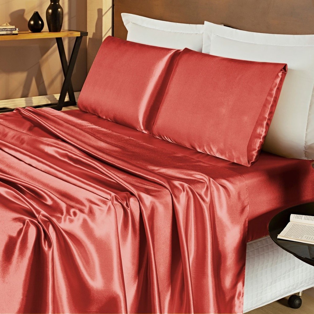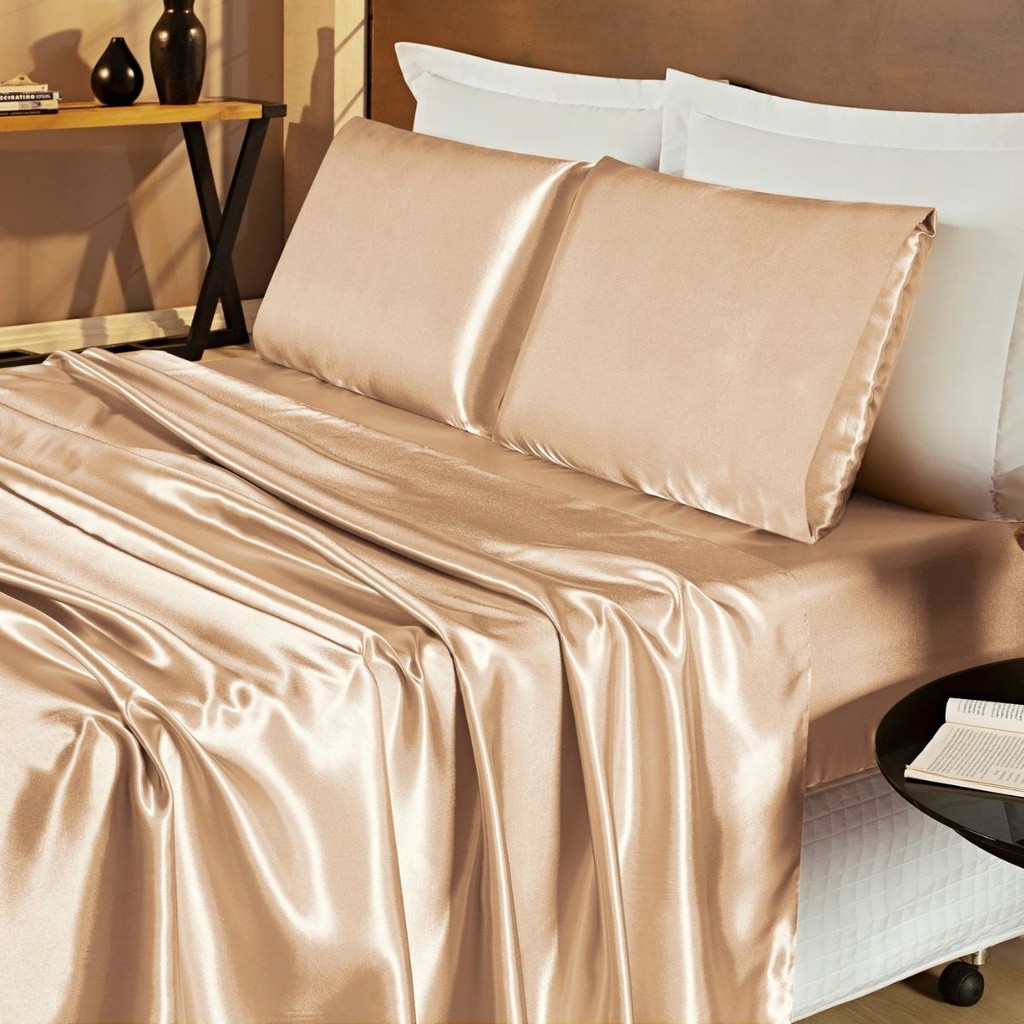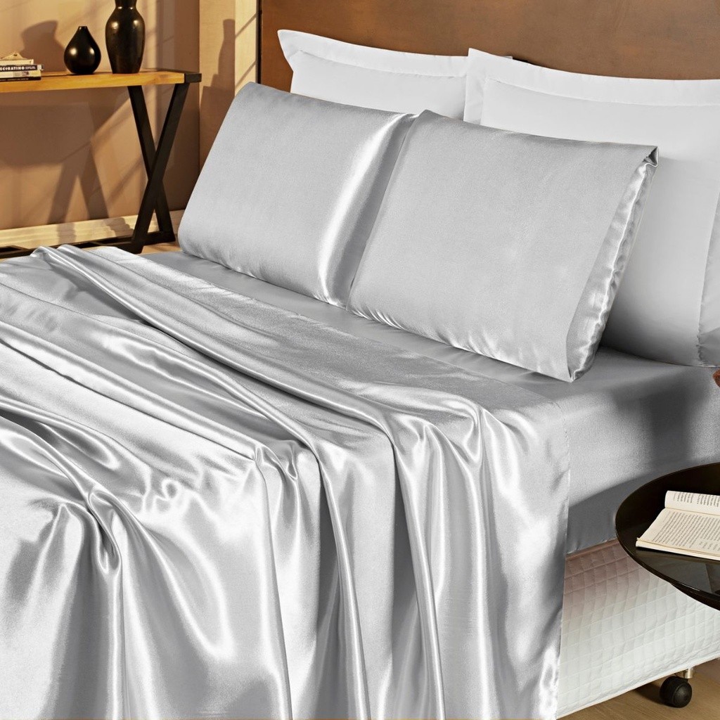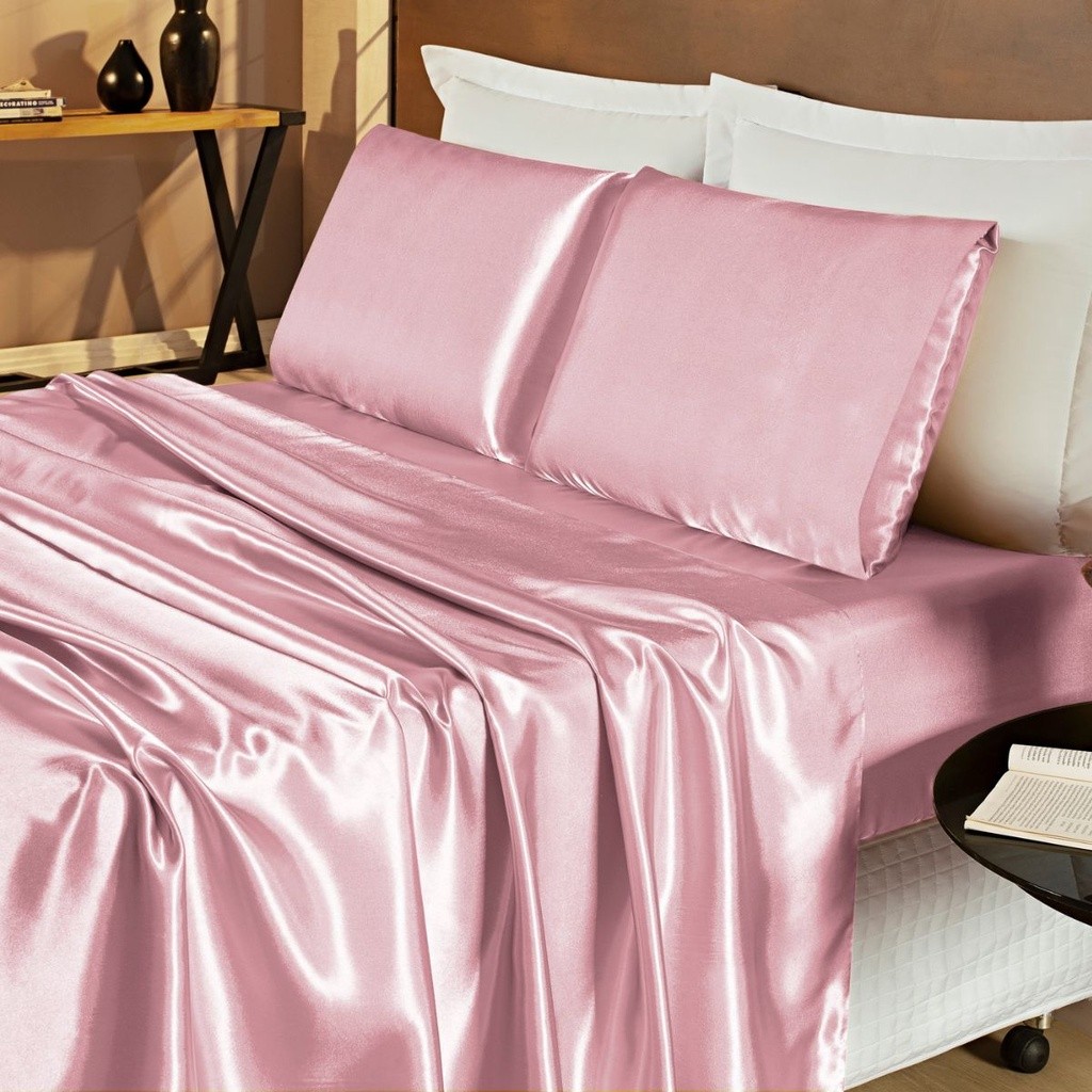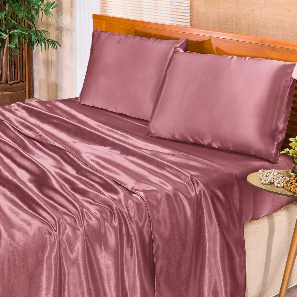 Jogo De Lençol 4 Peças Cetim Nobre Charmouse Casal\Queen\King - Lençol Com Elástico - Romantic