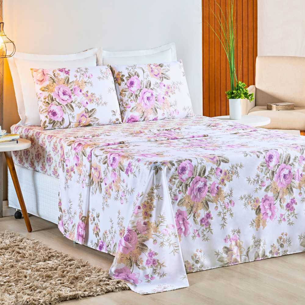 Jogo de Lençol 4 Peças King/Queen/Casal/Solteiro Bouti Lençol de Cima, de Baixo e Fronhas