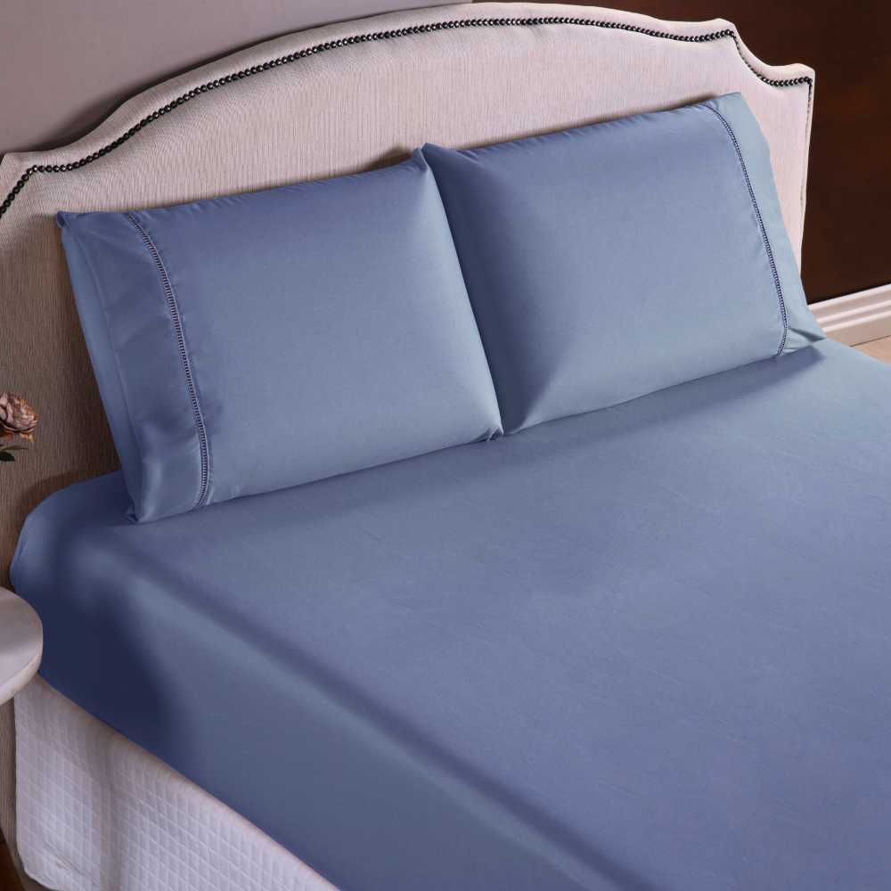Jogo de Lençol 3 Peças Ponto Palito Em Tecido Percal 400 Fios King/Queen/Casal/Solteiro Com Elástico