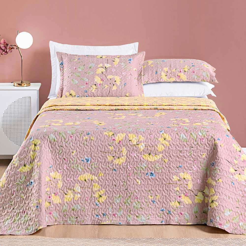 Jogo de Colcha Cobre Leito 3 peças King Size Estampada Dupla Face Bouti Matelado e Aba Americana