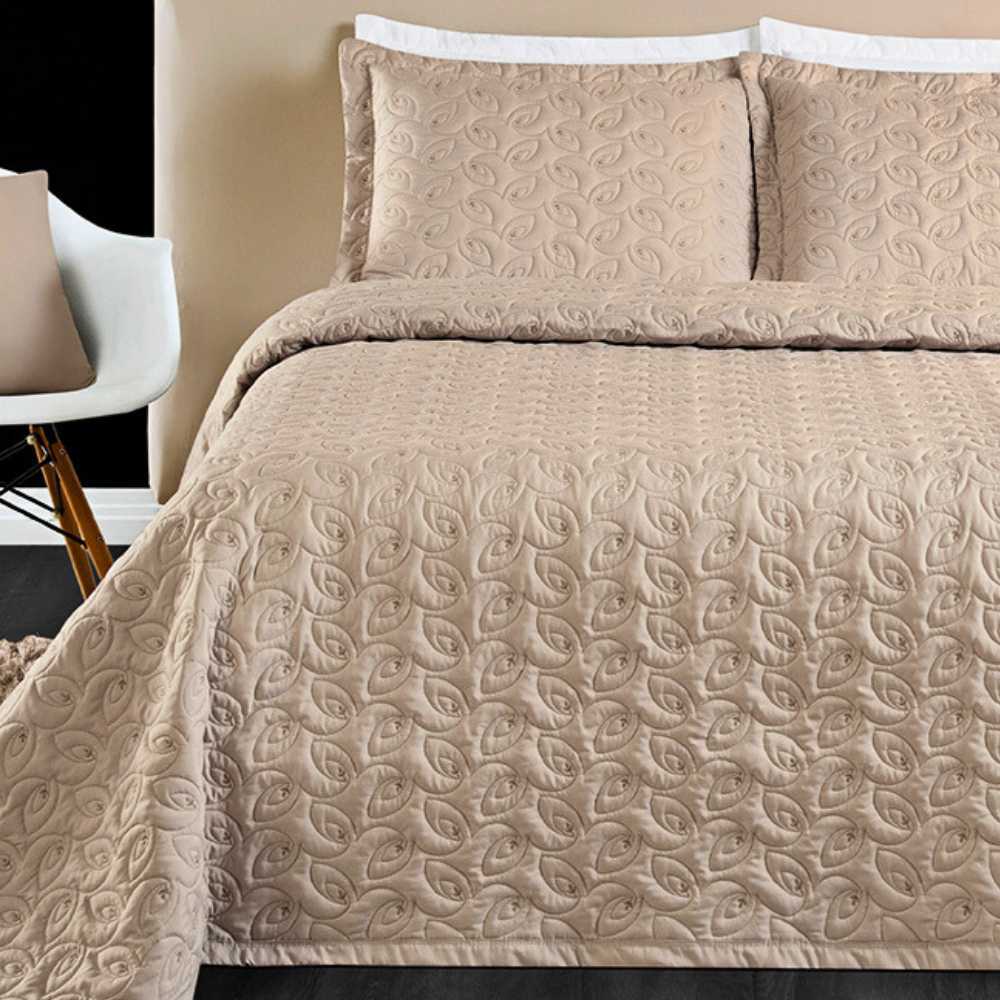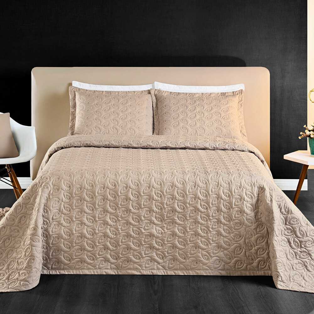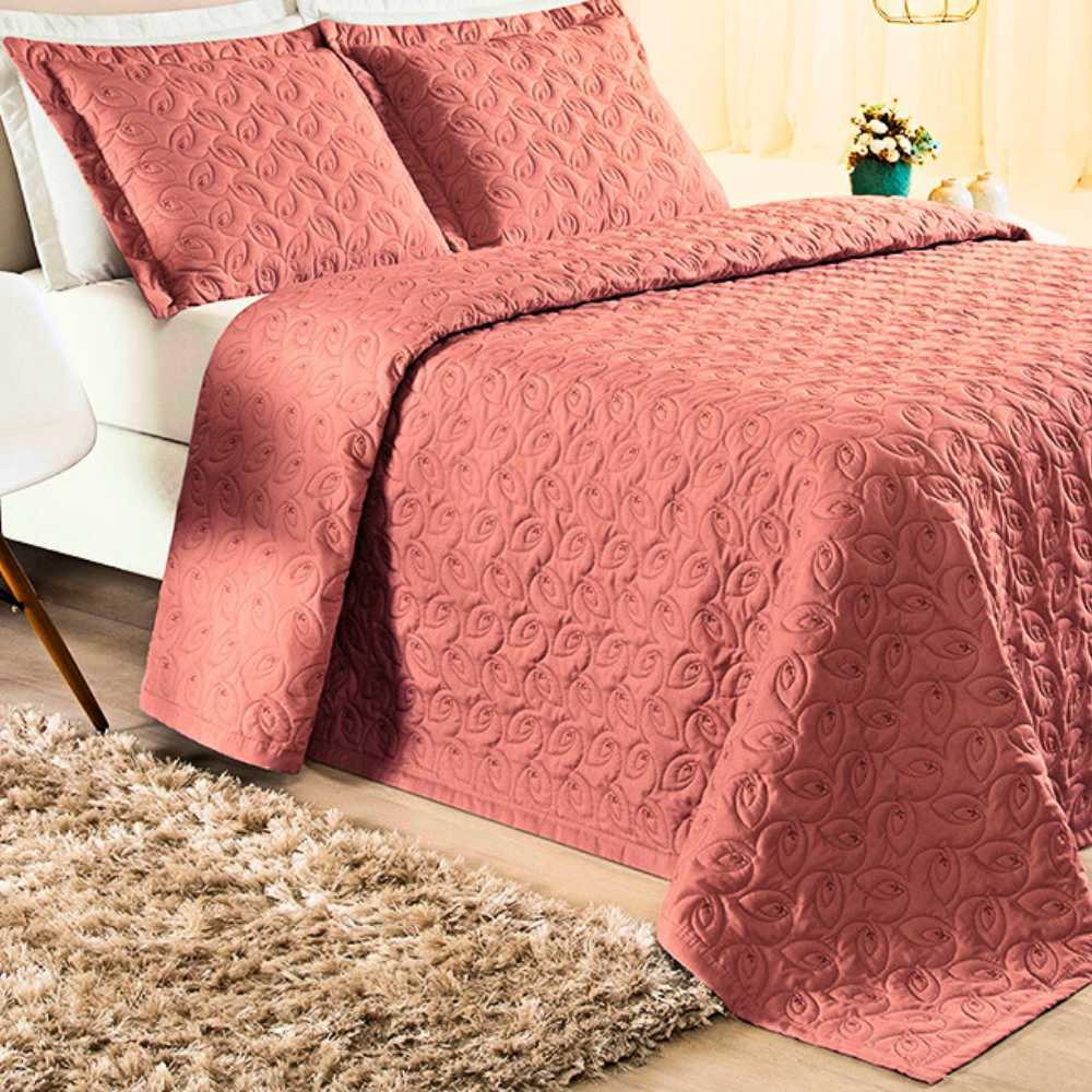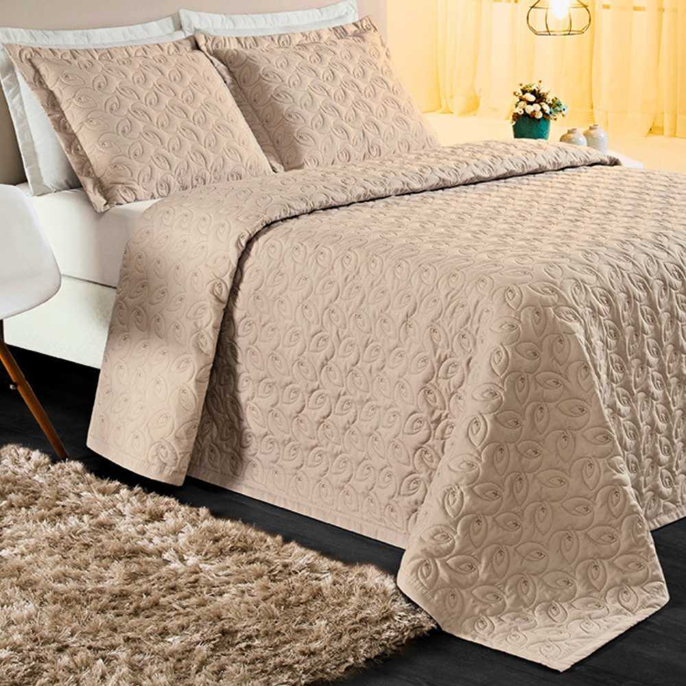 Kit Cobre Leito Colcha 3 Peças Bordado King Size Luxuoso Percal 200 Fios Com Porta Travesseiro Ágata