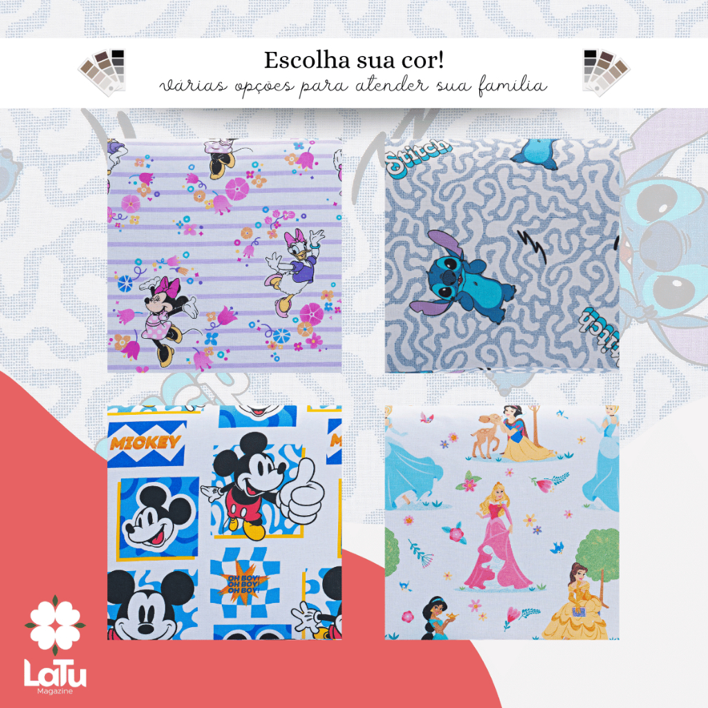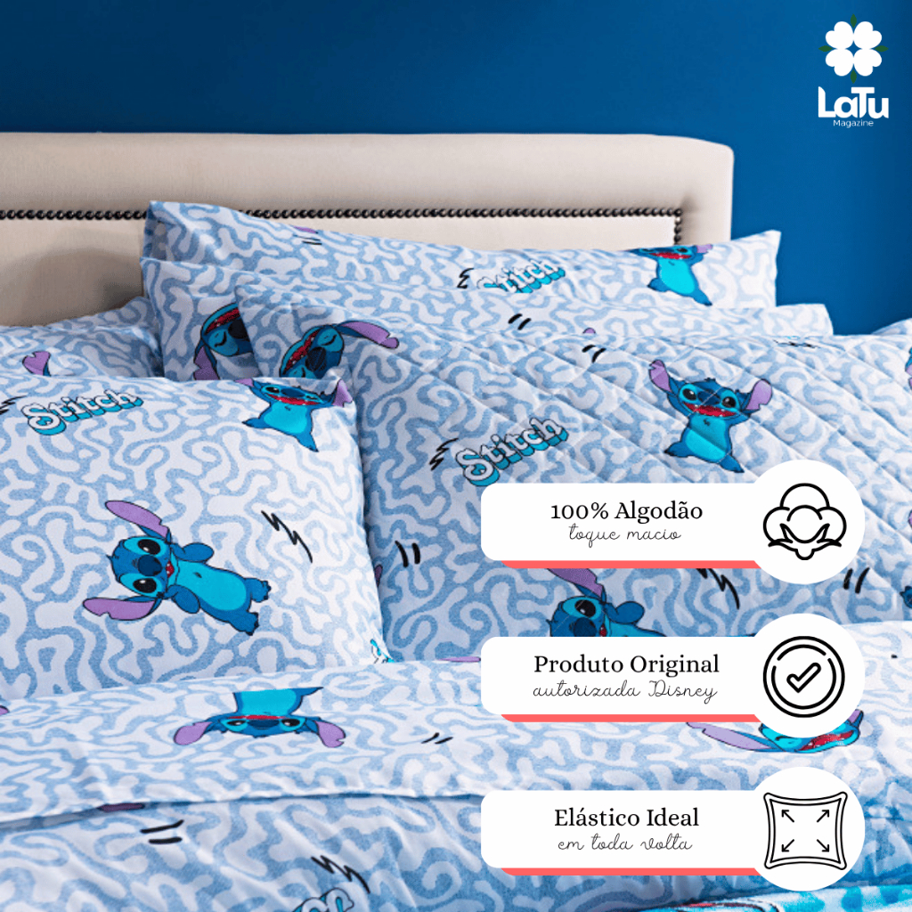 Jogo de Lençol Disney Original 100% Algodão Casal/Solteiro Infantil Stitch Mickey Minnie Princesa