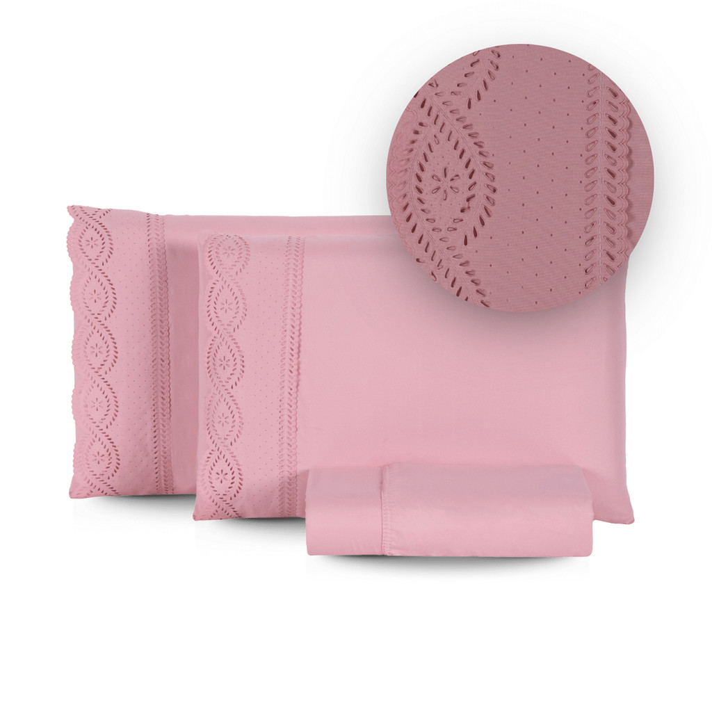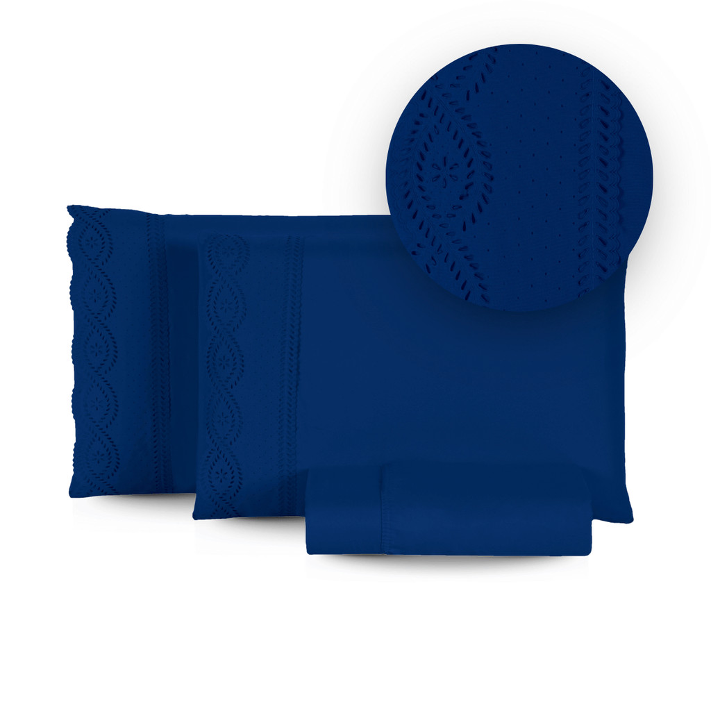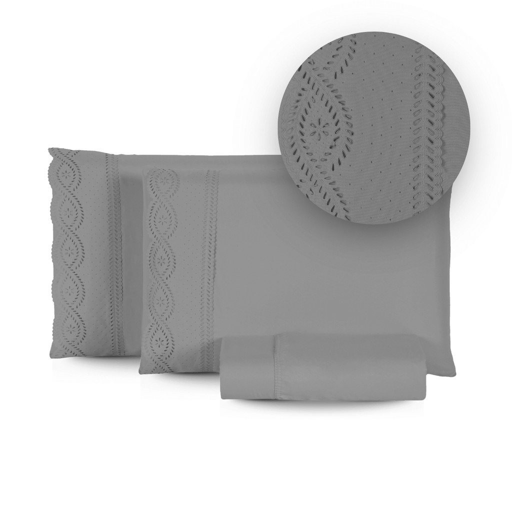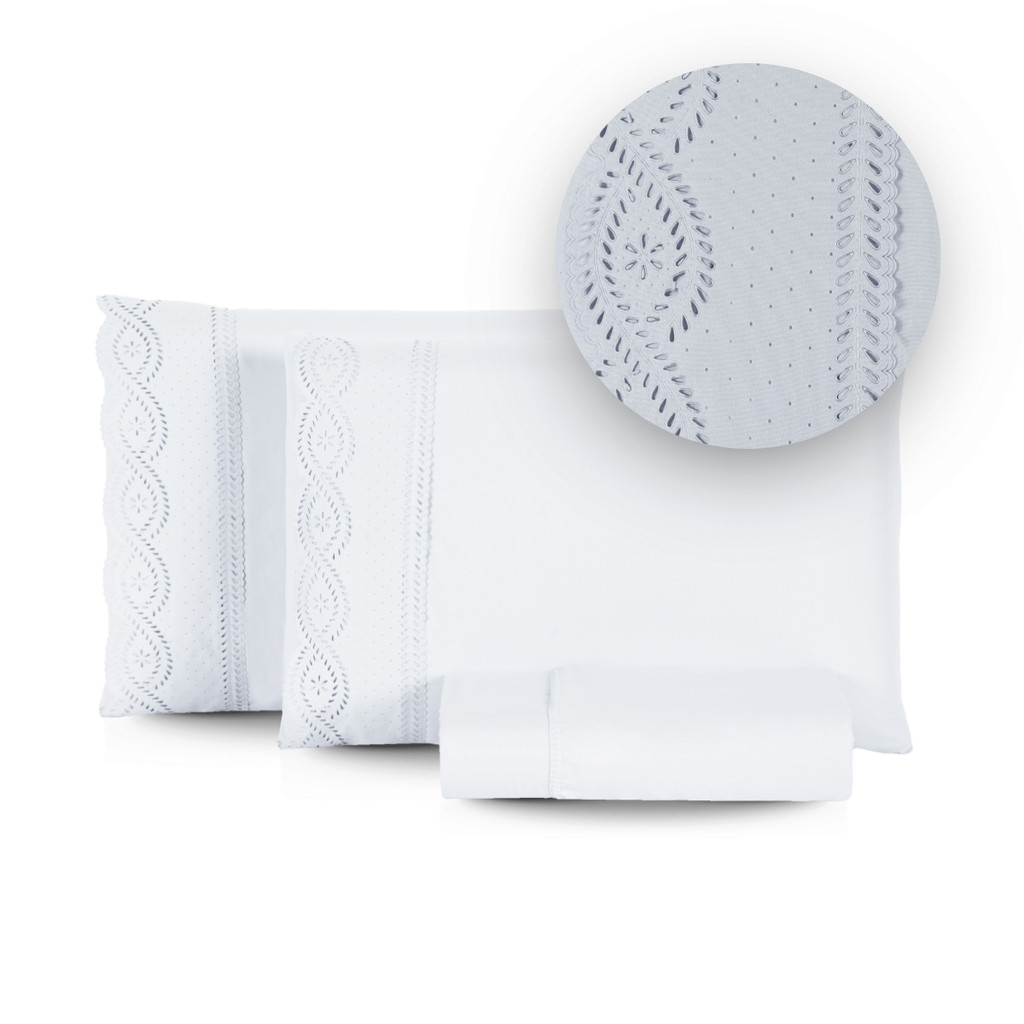 Jogo de Cama Bordado Inglês 400 Fios Casal\Queen 3 Peças Lençol Hipercal Toque Macio Com Elástico