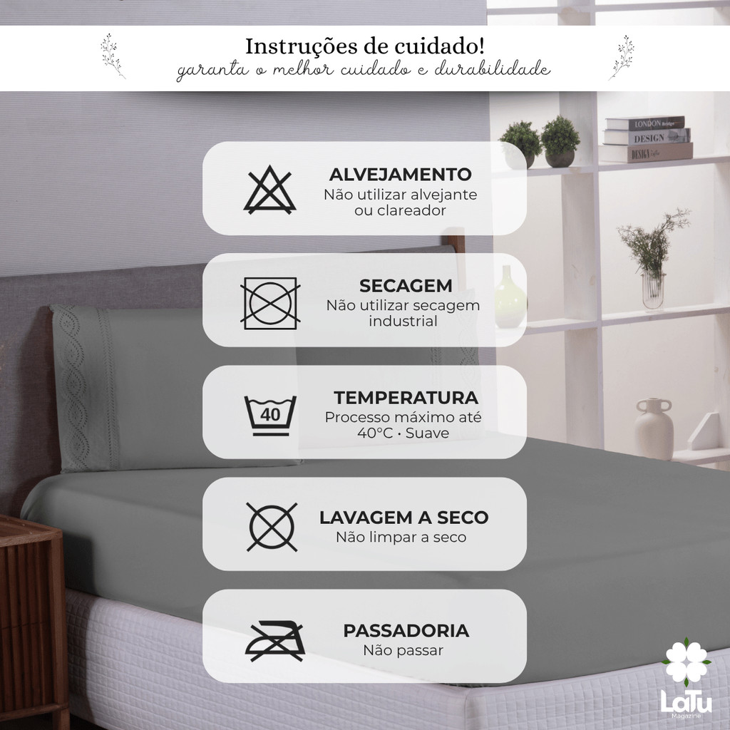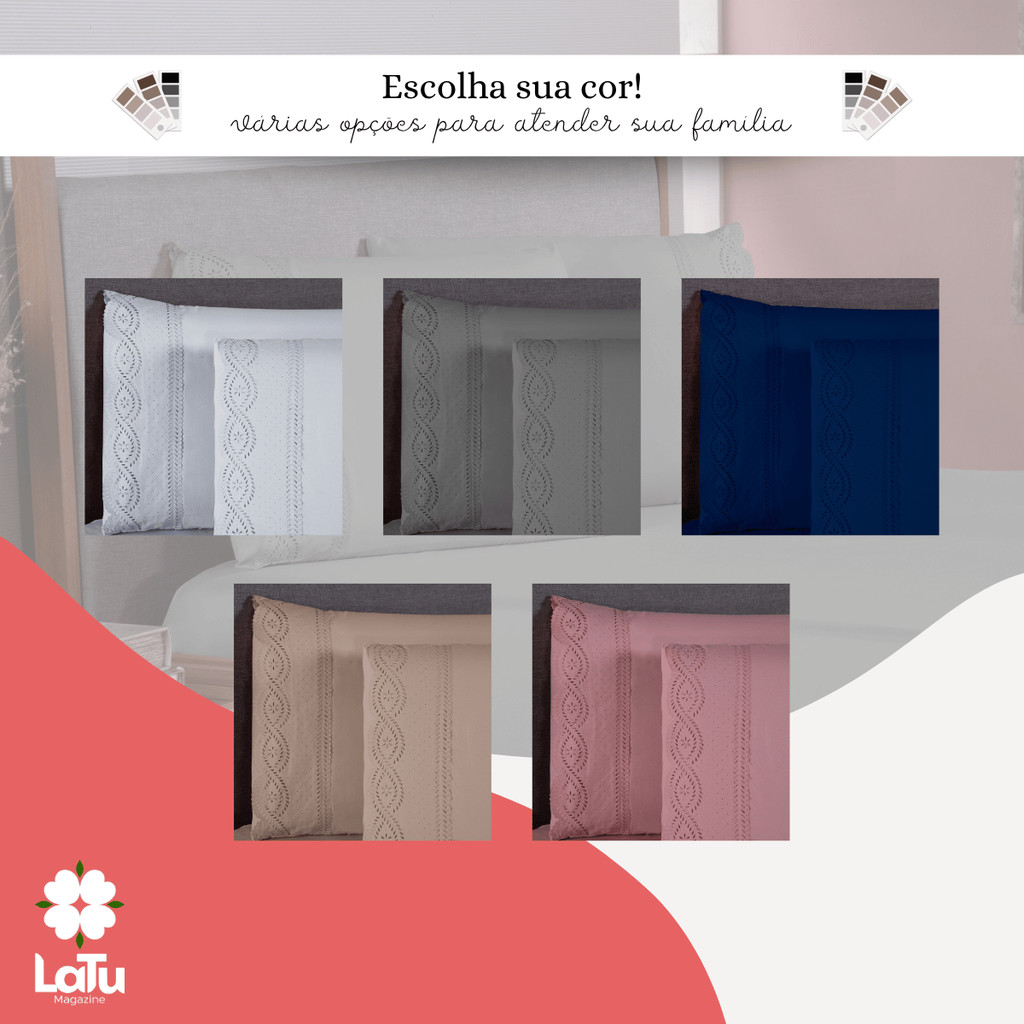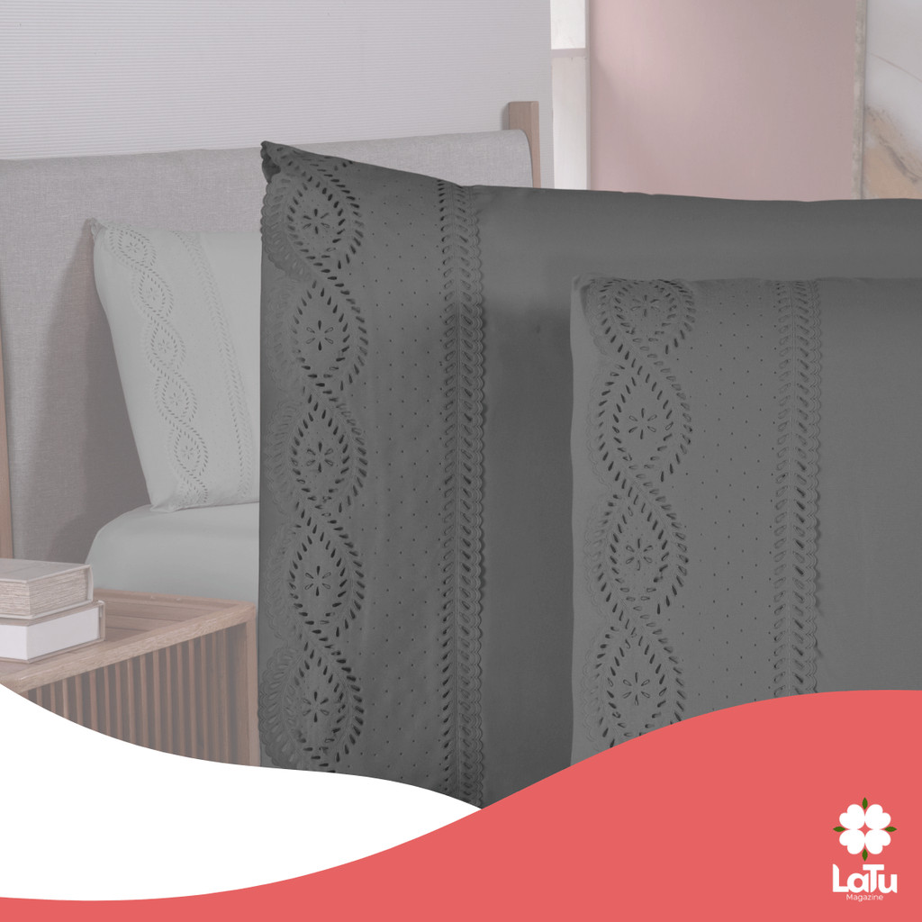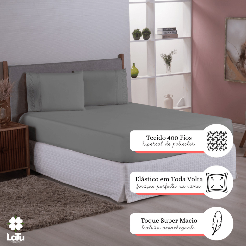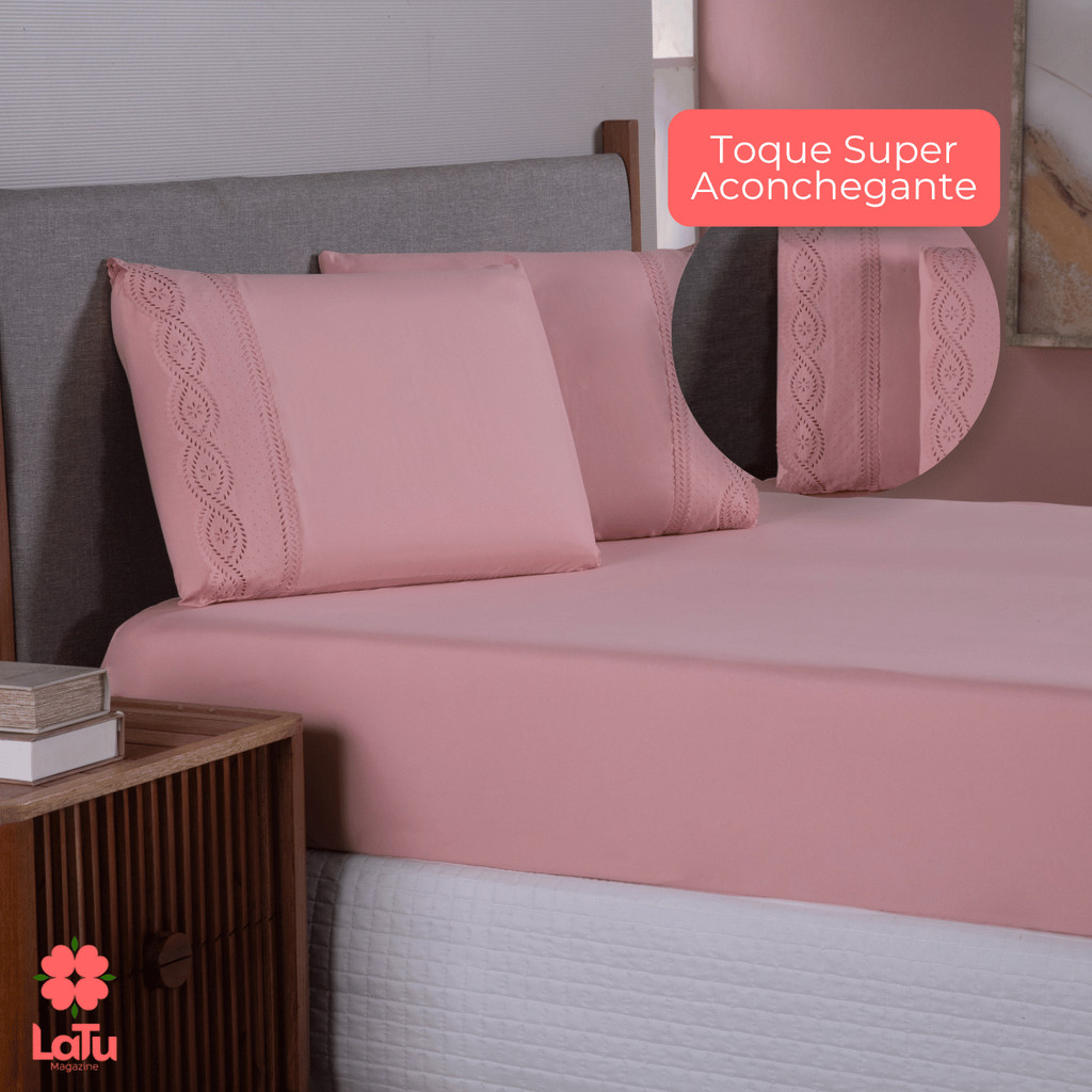 Jogo de Cama Bordado Inglês 400 Fios Casal\Queen 3 Peças Lençol Hipercal Toque Macio Com Elástico