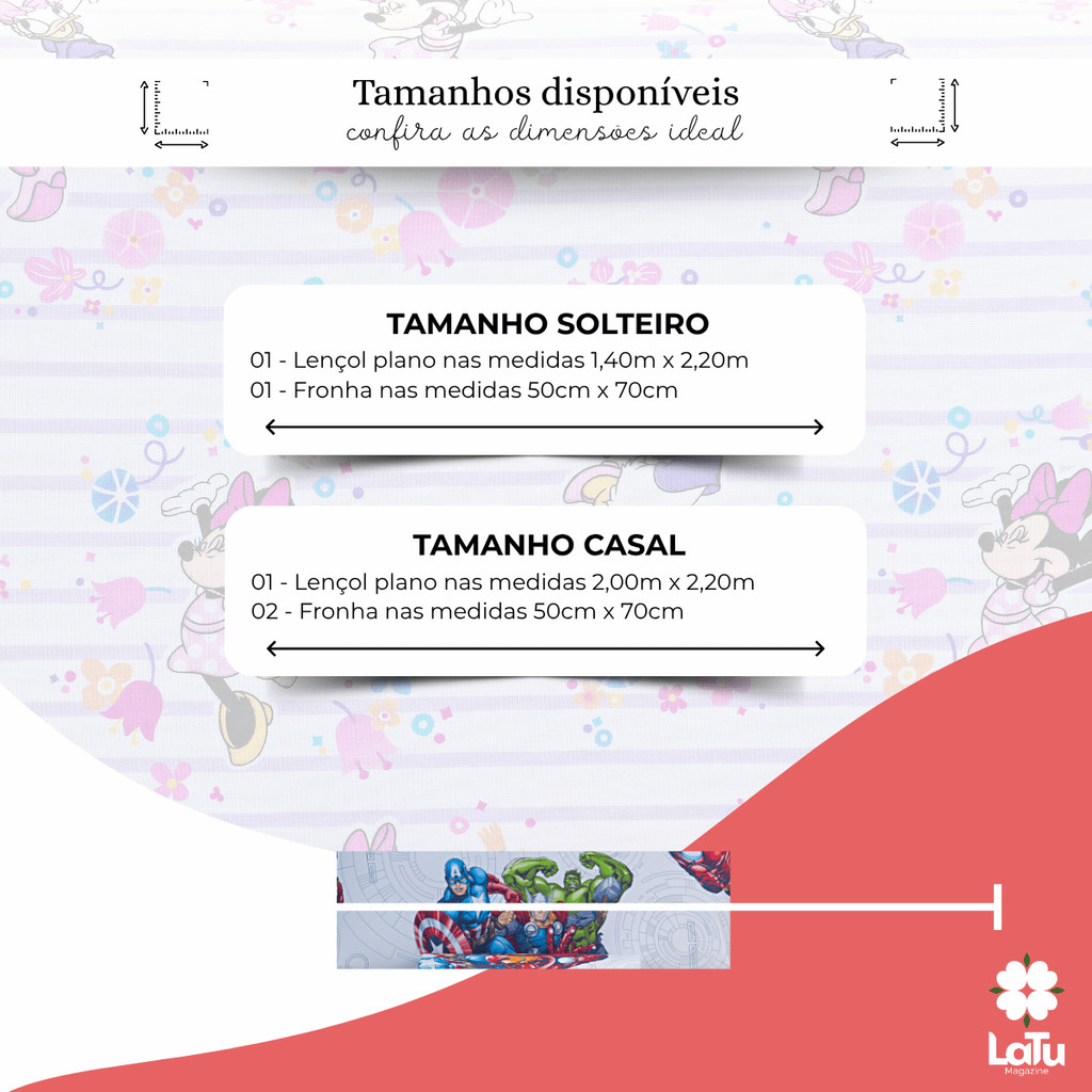 Jogo de Lençol Marvel Original Avengers Vingadores - Thor - Homem de Ferro - Hulk - Capitão América