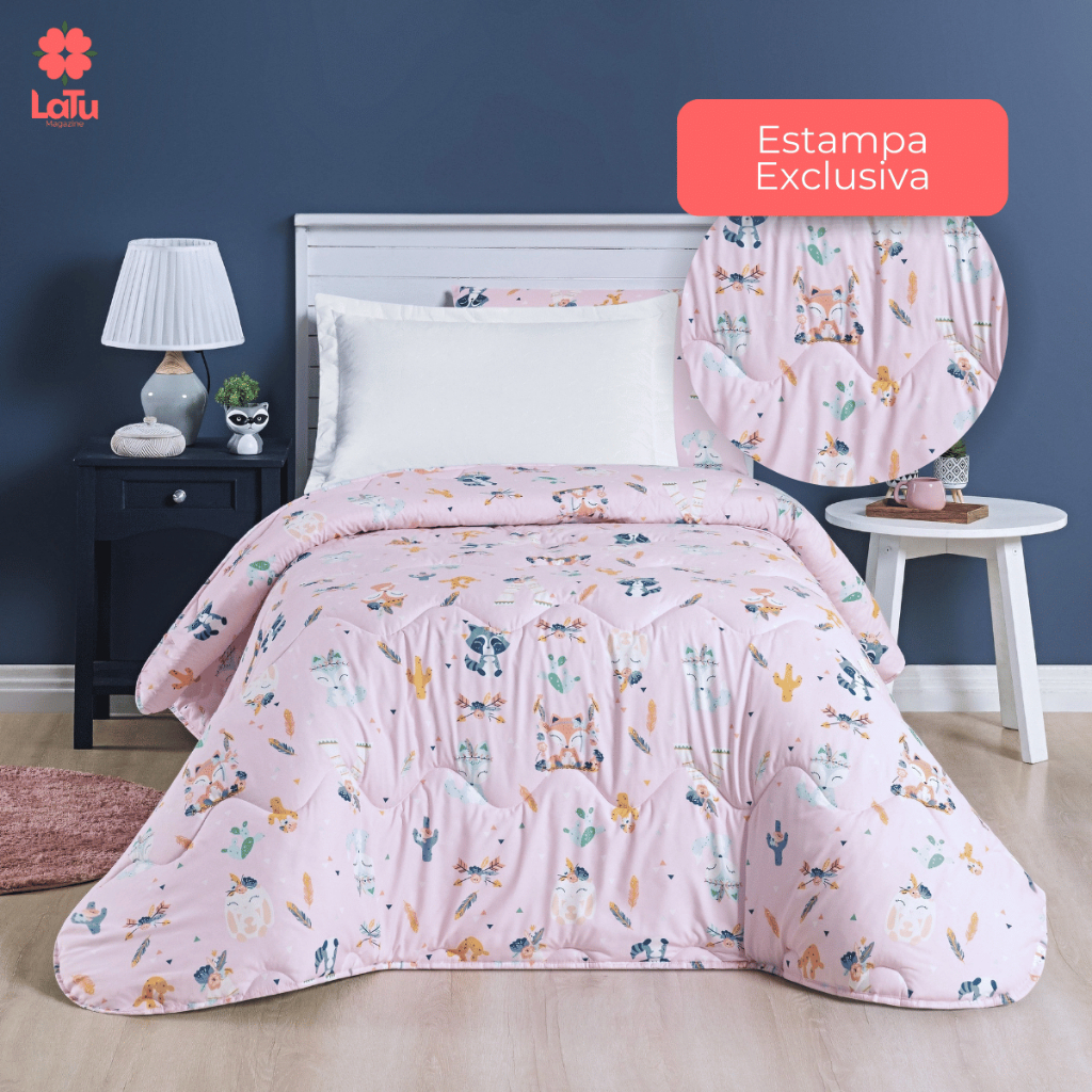 Edredom Solteiro Kids 200 Fios Percal Estampado Avulso Cobertor Enchimento Soft Dupla Face Macio