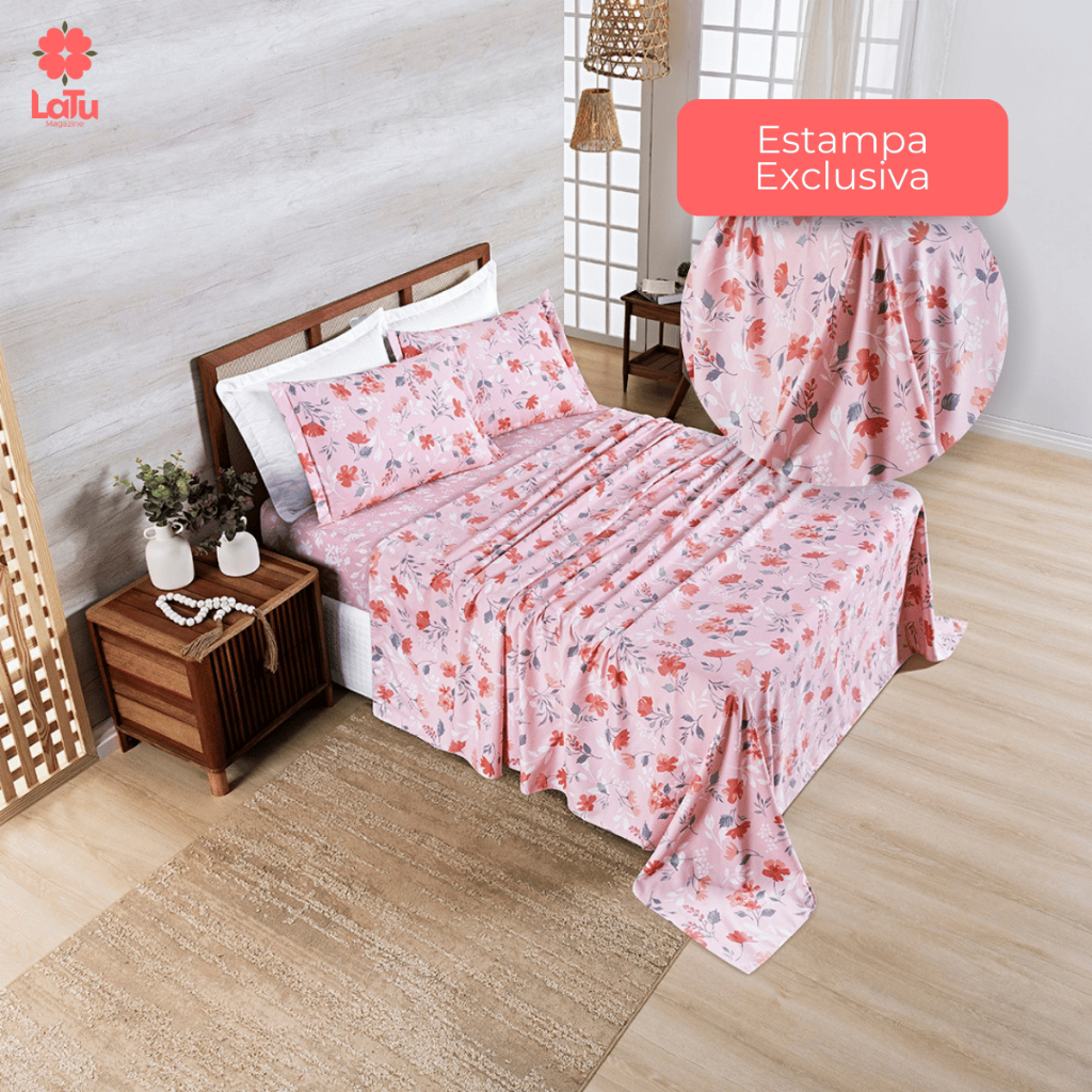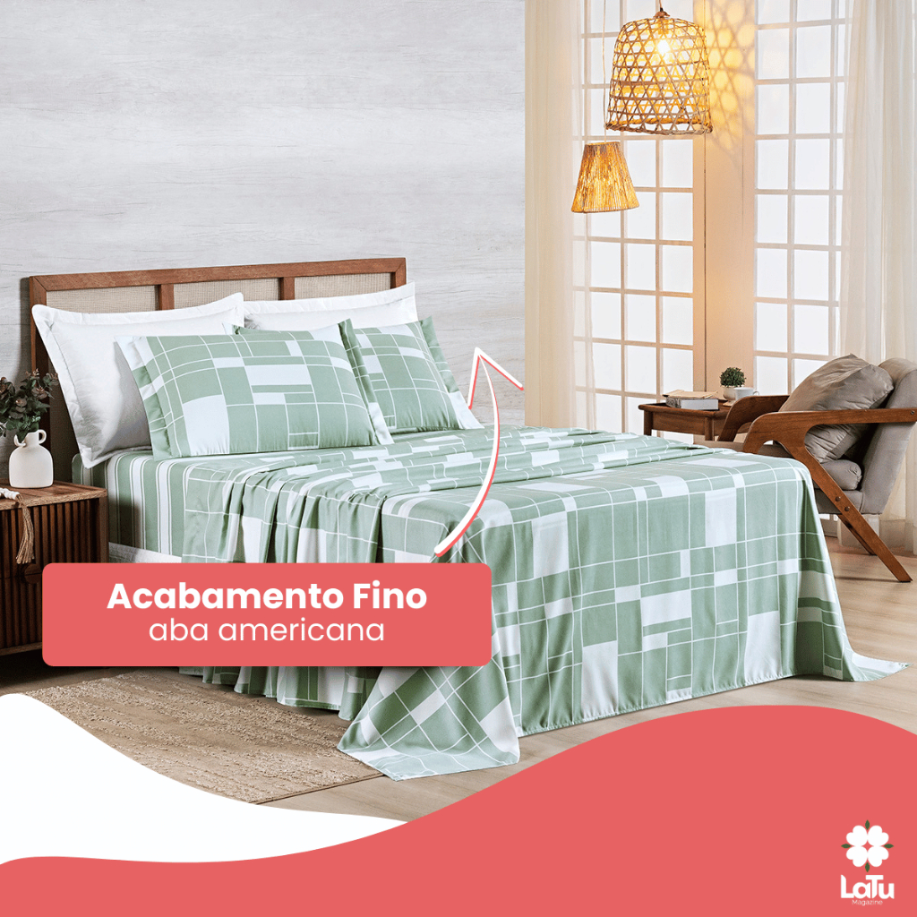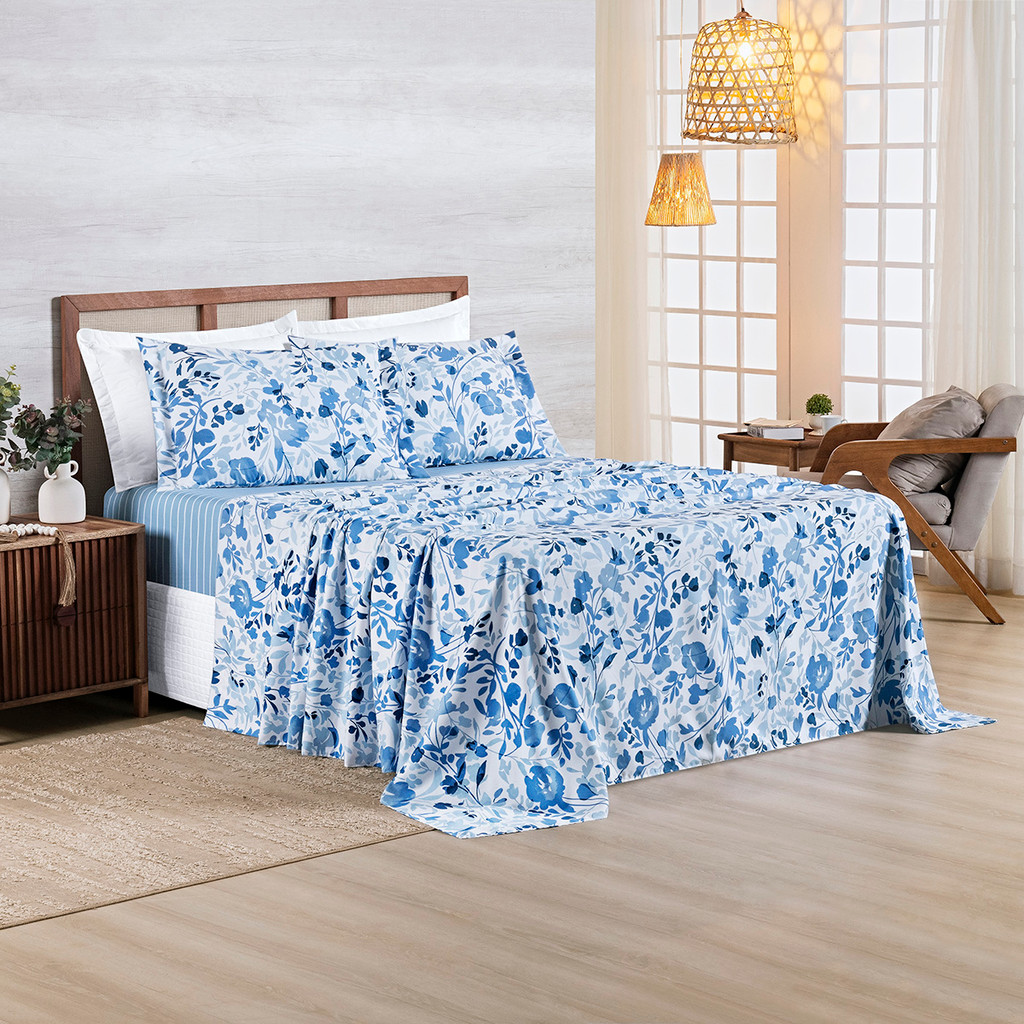 Jogo de Cama 4 Peças Casal\Queen\King 400 Fios Percal Estampado Aba Americana Kit Lençol C/ Elástico