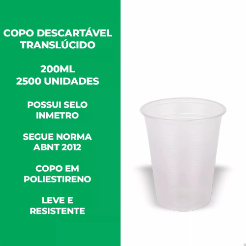 Copo Descartável 200ML Transparente Copoflex - 2500 unidades