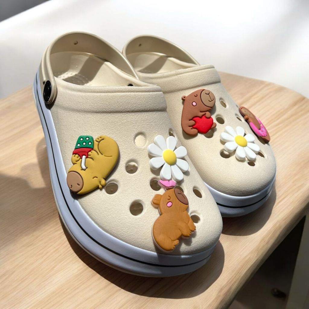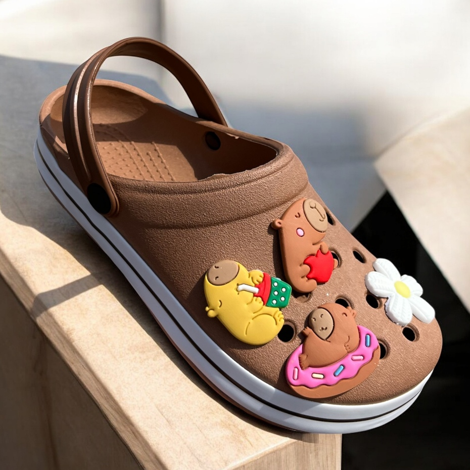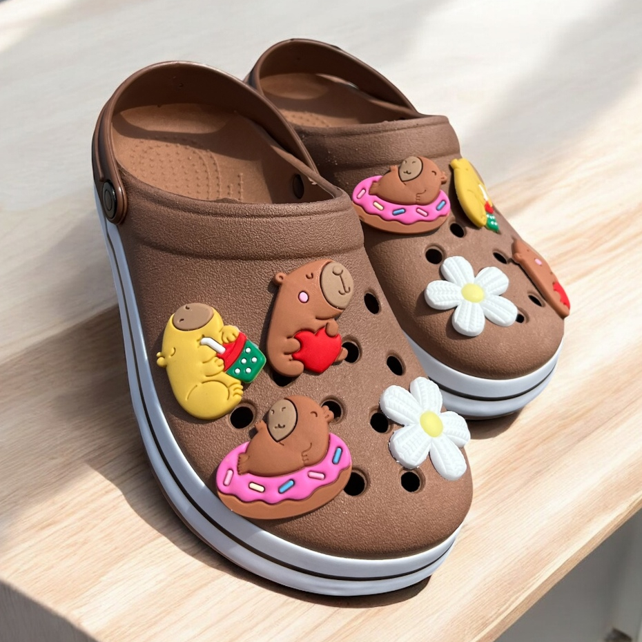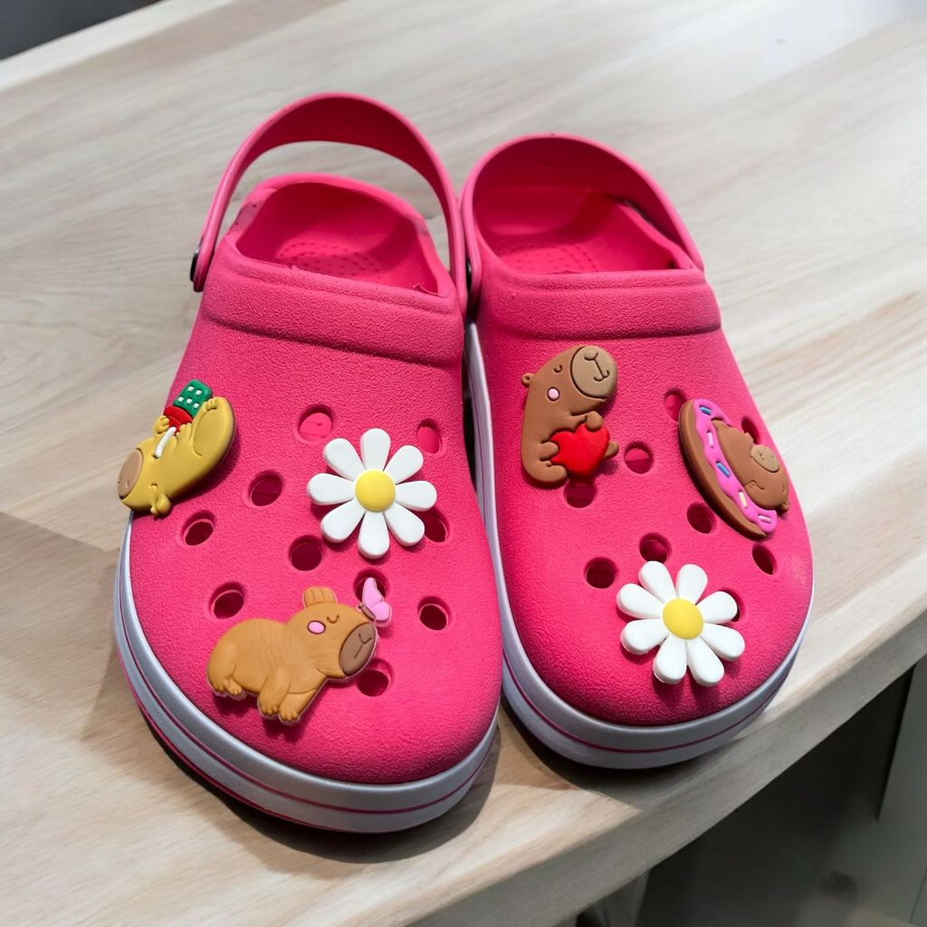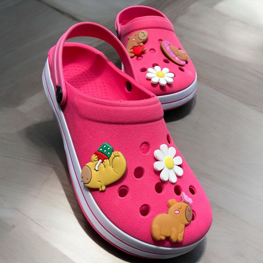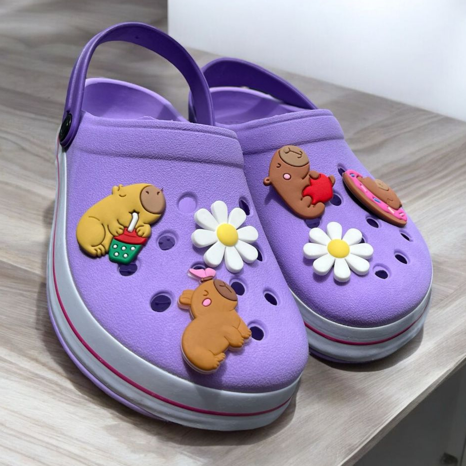 Babuche Fachetado Infantil & Adulto Kit + 4 Bottons Capivara Leve e Confortável Frio