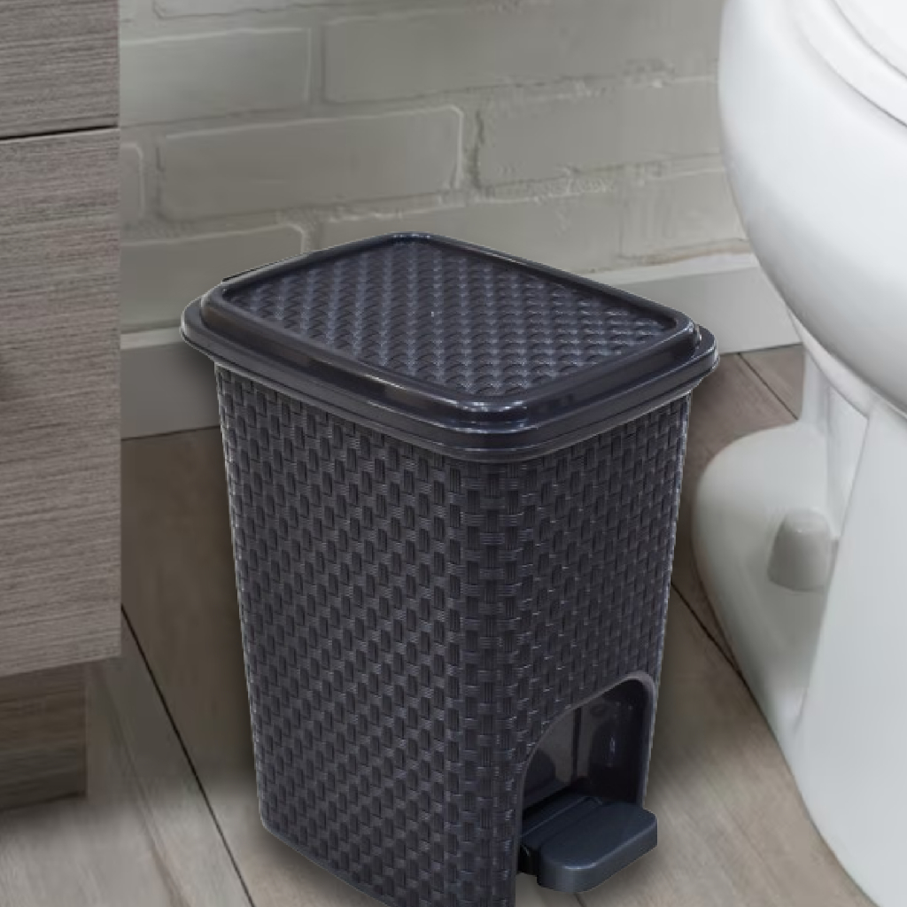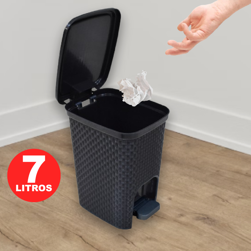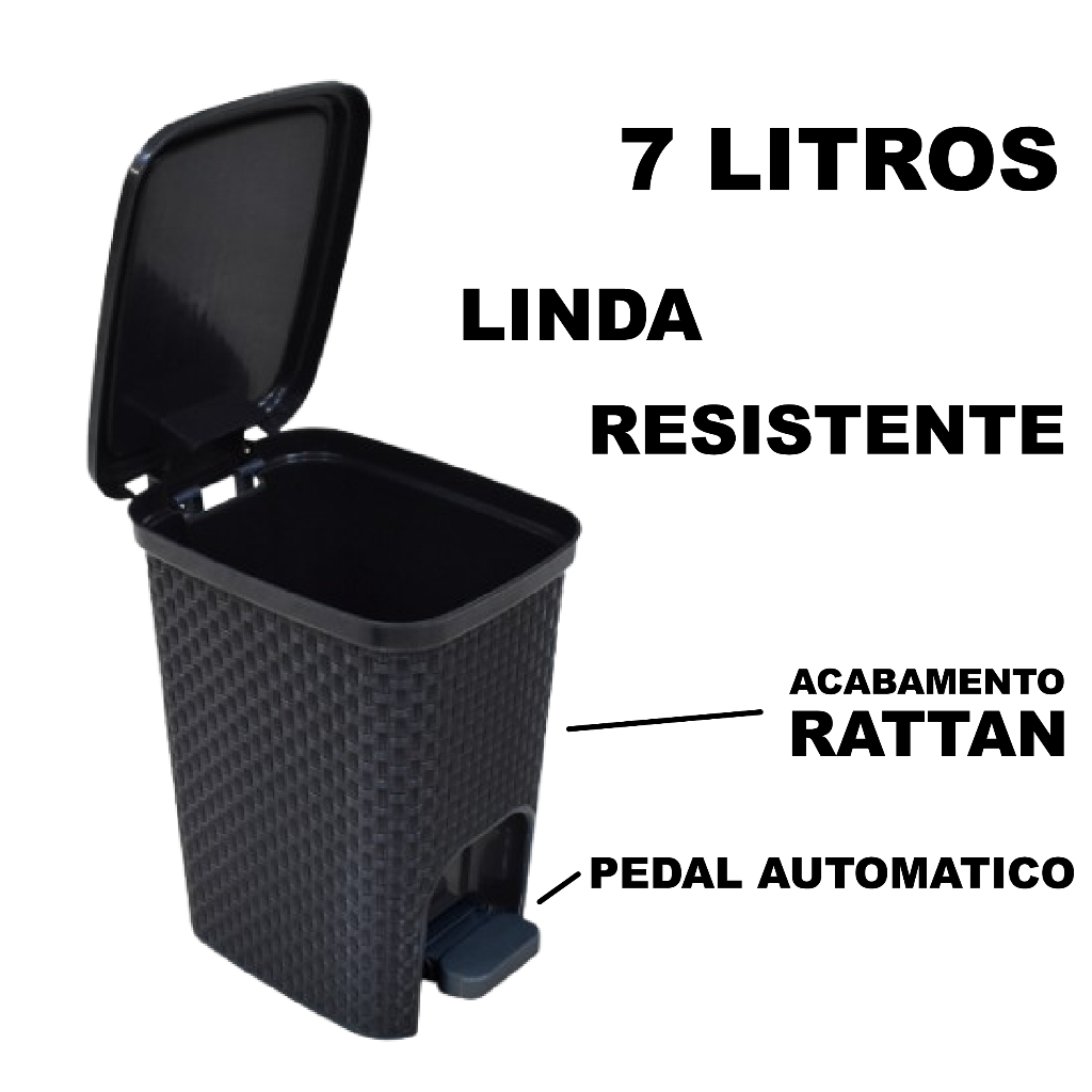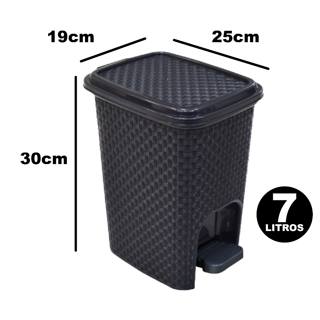 Kit 3 Lixeira Cesto de Lixo 7 Litros Rattan Com Tampa e Pedal Para Banheiro Cozinha De Plástico