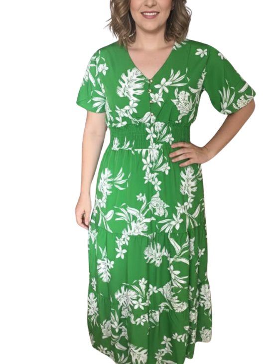 VESTIDO BOTON tamanho unico 40-46 ,tecido crepinho tem forro interno ,botao na frente funcional,con elastex na cintura