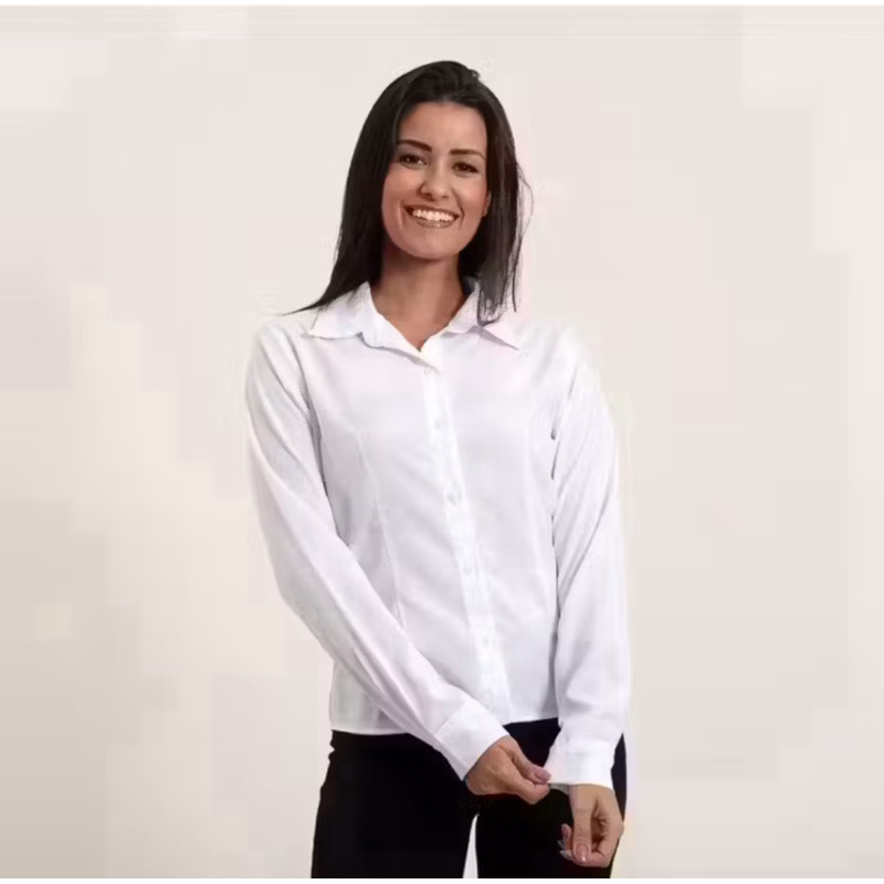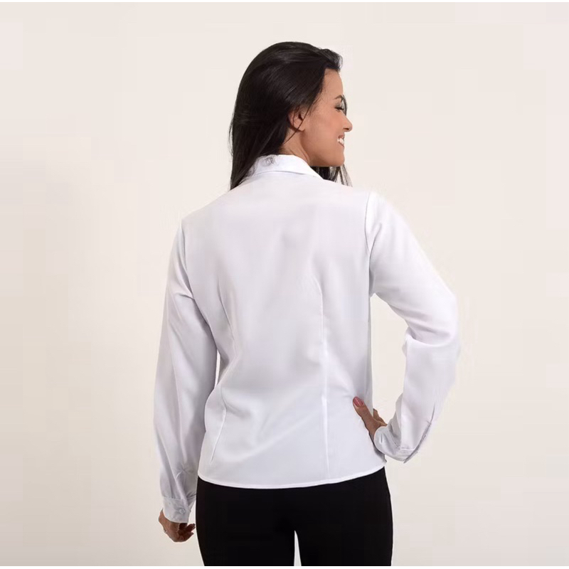 Camisa branca ou preta feminina social manga longa para trabalho.