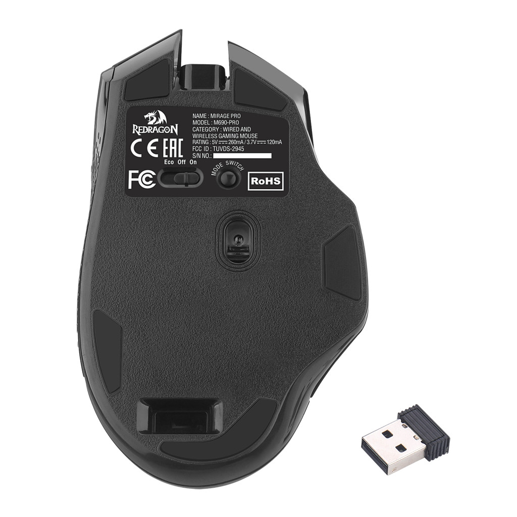 MOUSE GAMER PRETO REDRAGON RGB SEM FIO WIRELES COM 8.000 DE DPI MIRAGE PRO