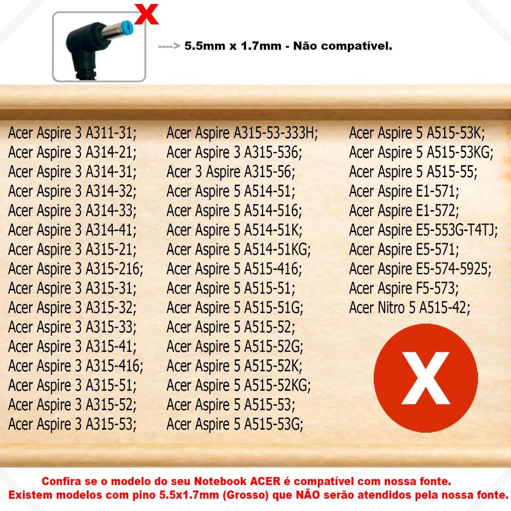 Carregador Para Acer Aspire 3 N20c5 A315-58-38sd A315-510p