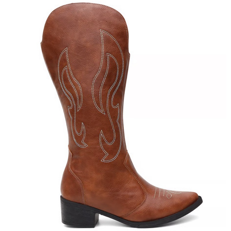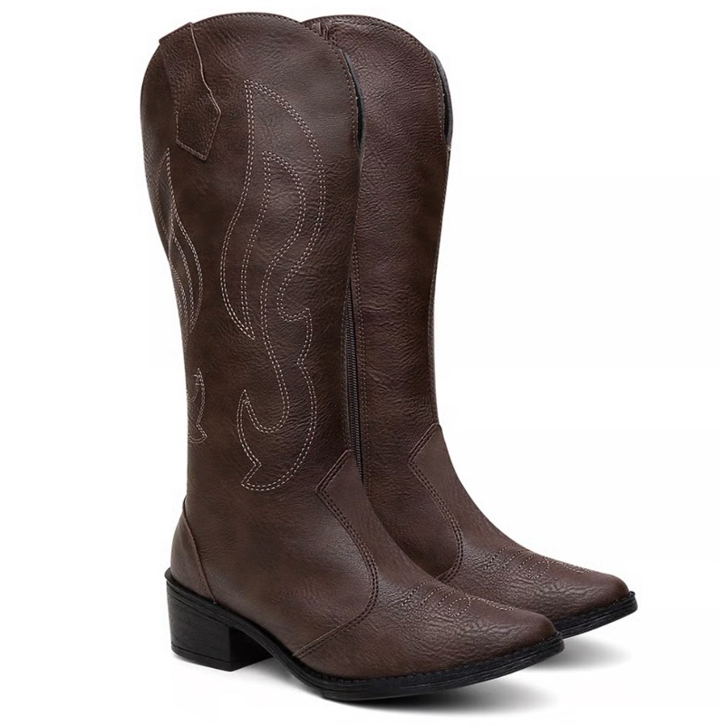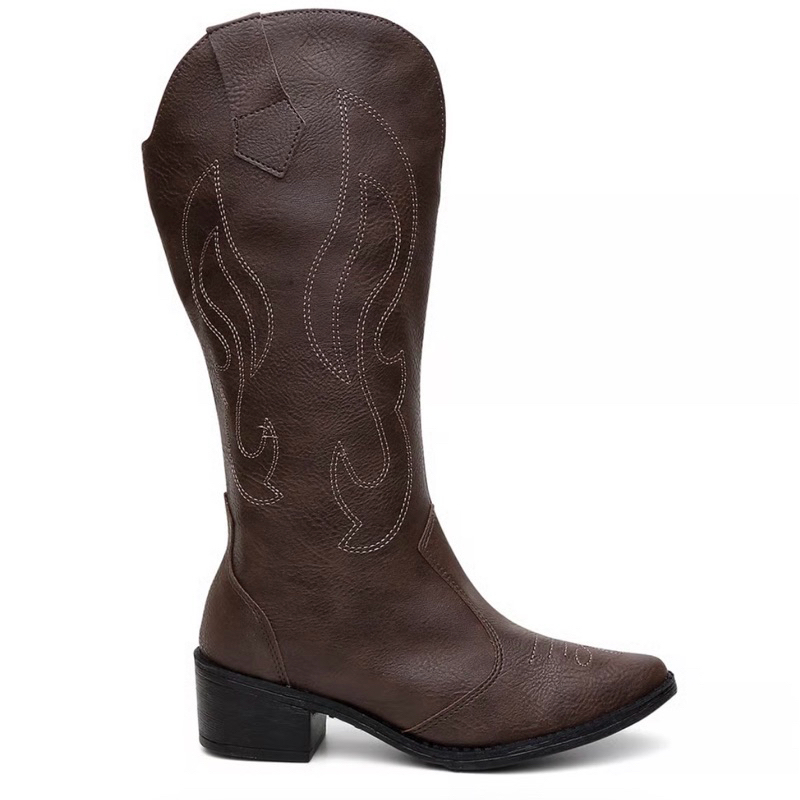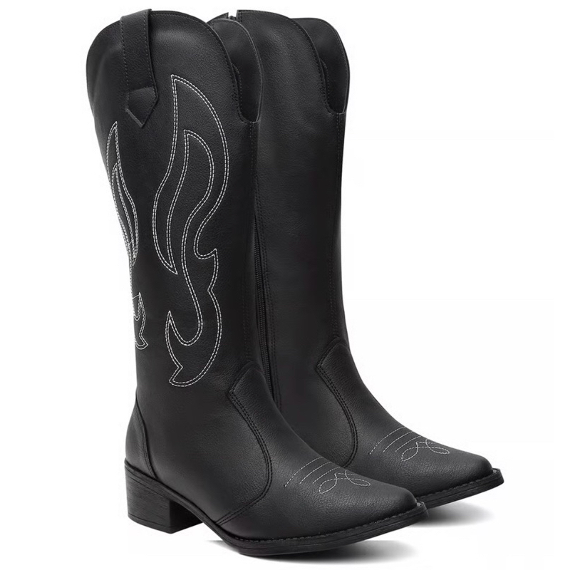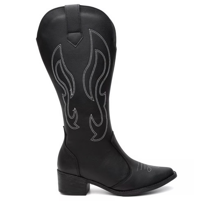 Bota Feminina Cano Alto Western Bordado Preto Ref(0001)