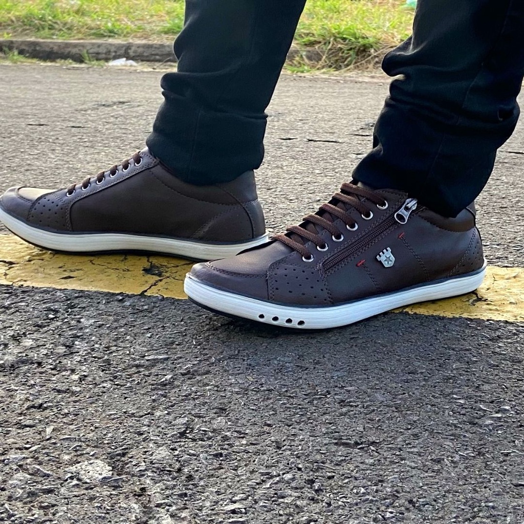 Sapatenis Masculino Casual Couro Confortavel Macio Anti Stress Moderno Elegante Leve Para Trabalho Passeio Dia a Dia
