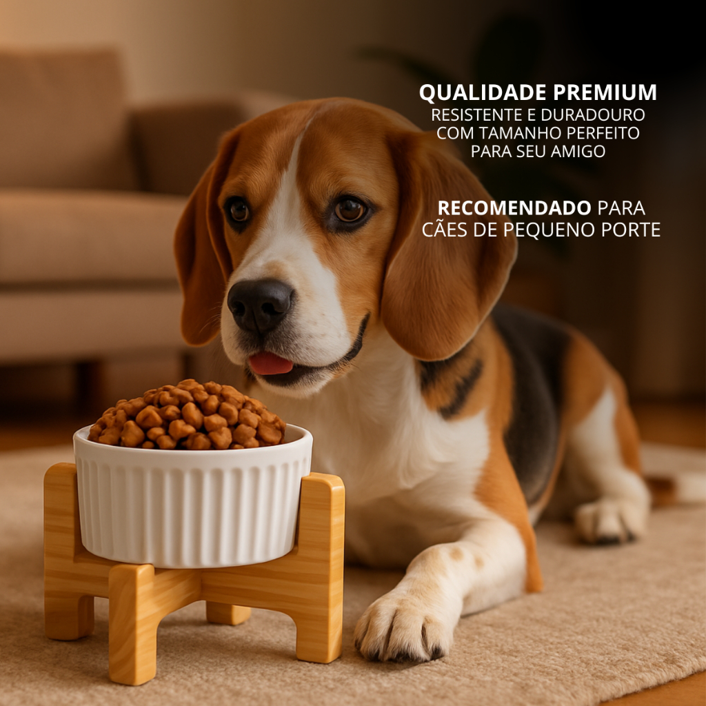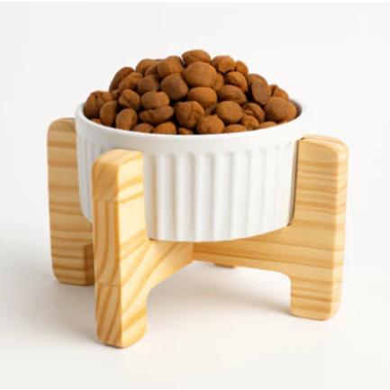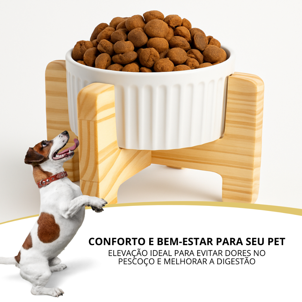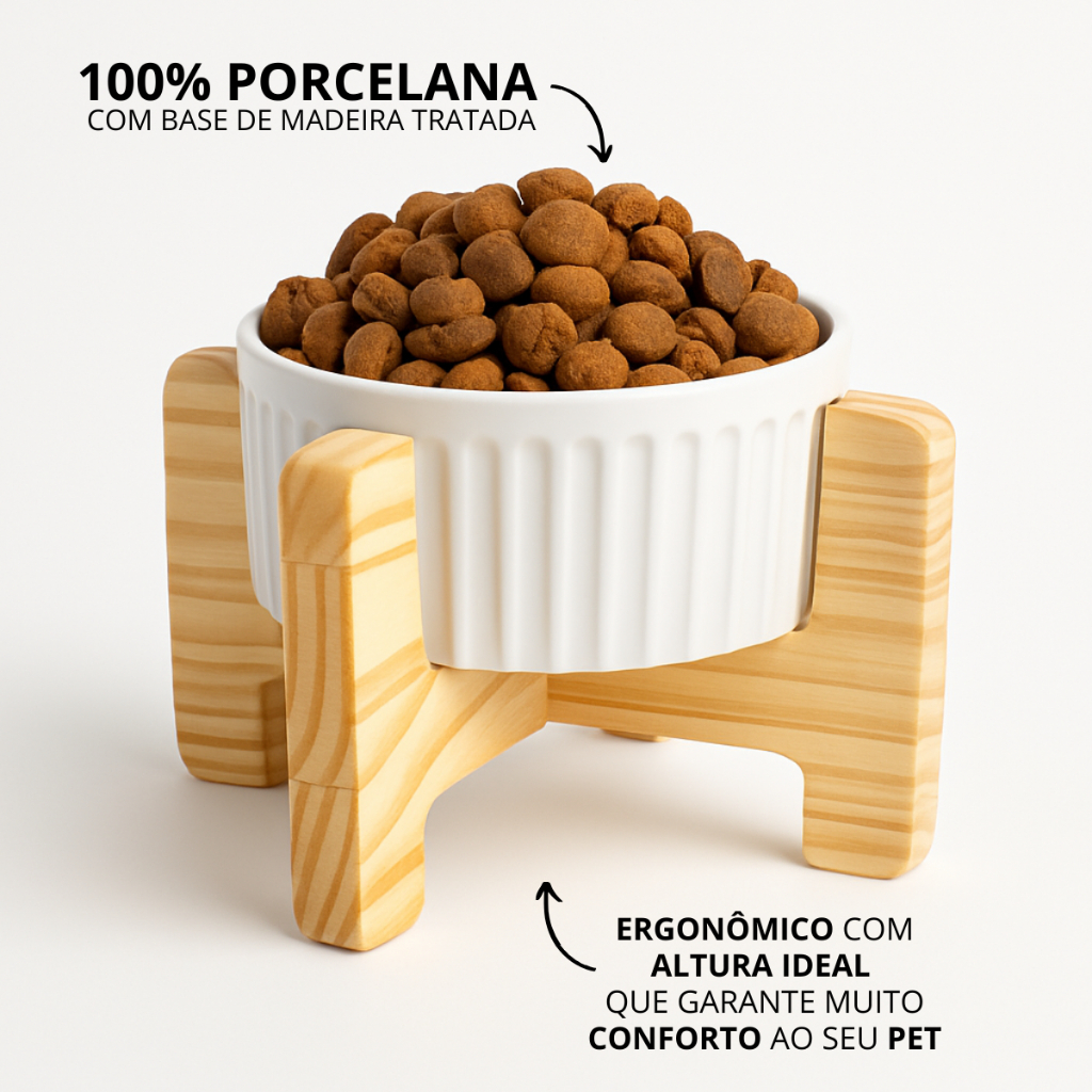 Comedouro Pet Elevado Comedoro Cachorro Gato Bebedouro Ergonômico De Madeira E Porcelana