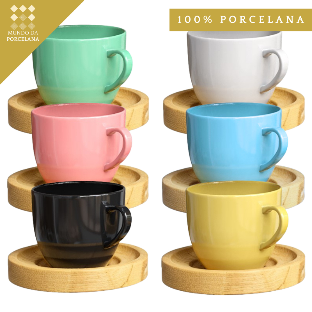 Kit Xicaras De Café Com Pires Kit Caneca Porcelana Branca Chicara De Cafe Chá 170ml