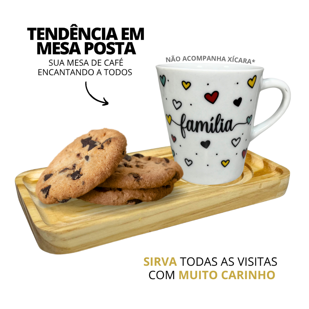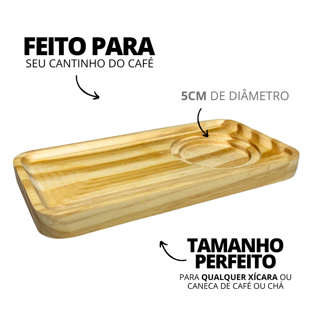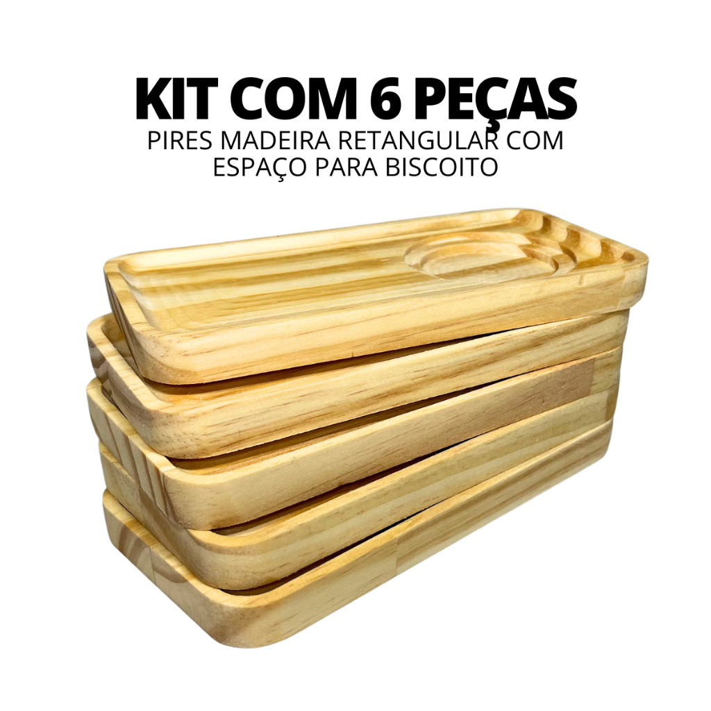 Kit 6 Pires Madeira Porta Copo Para Xícaras Café Chá Espaço Para Bolacha Servir