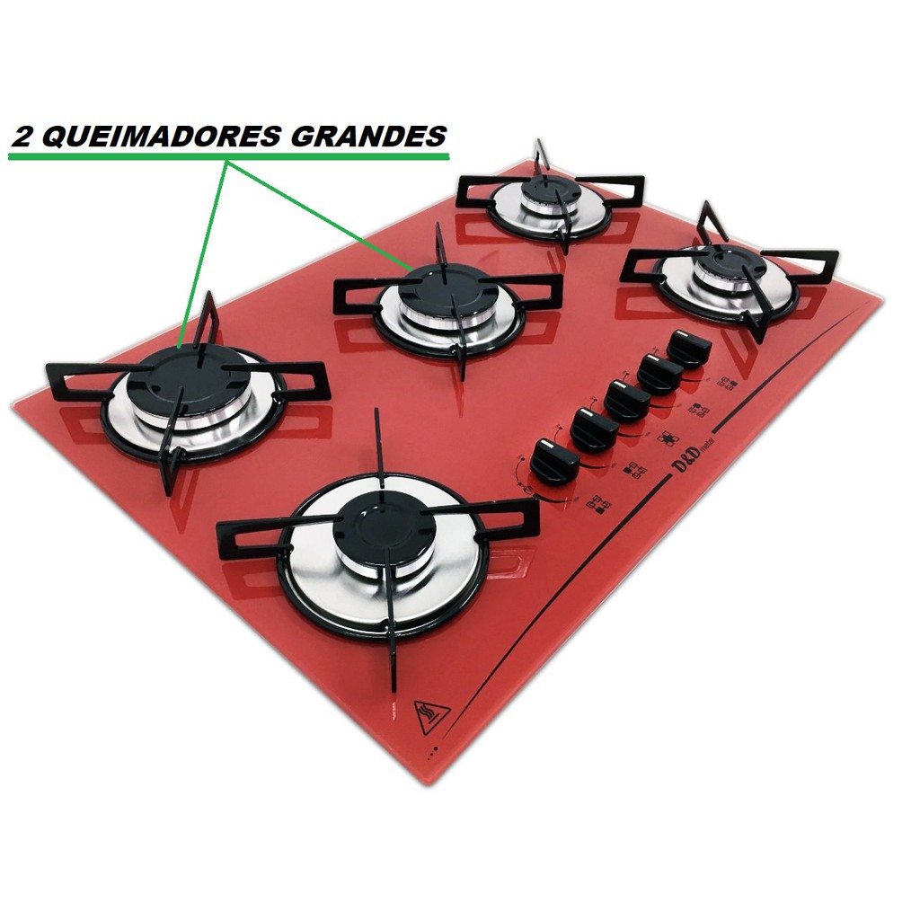 Fogão Cooktop D&D 5 bocas mega chama a gás Varias cores