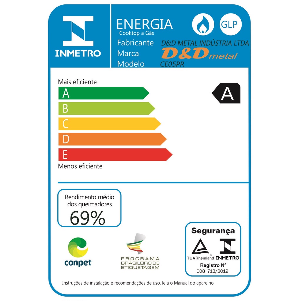 Fogão cooktop D&D 5 bocas branco a gás