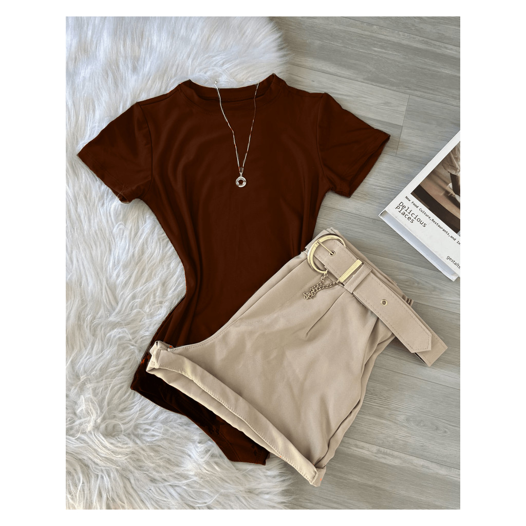 Conjunto2 Um bory body + Short com cinto Inspiração Moda Blogueira 2026