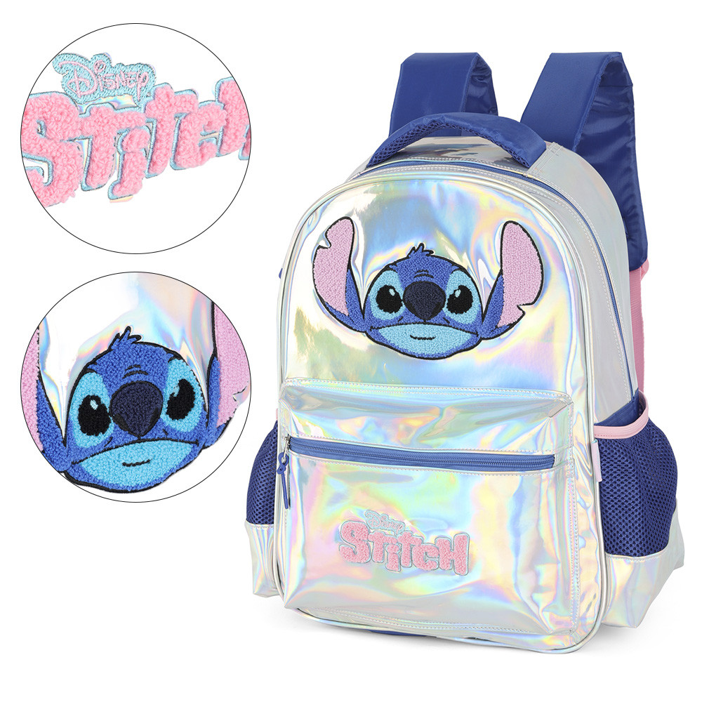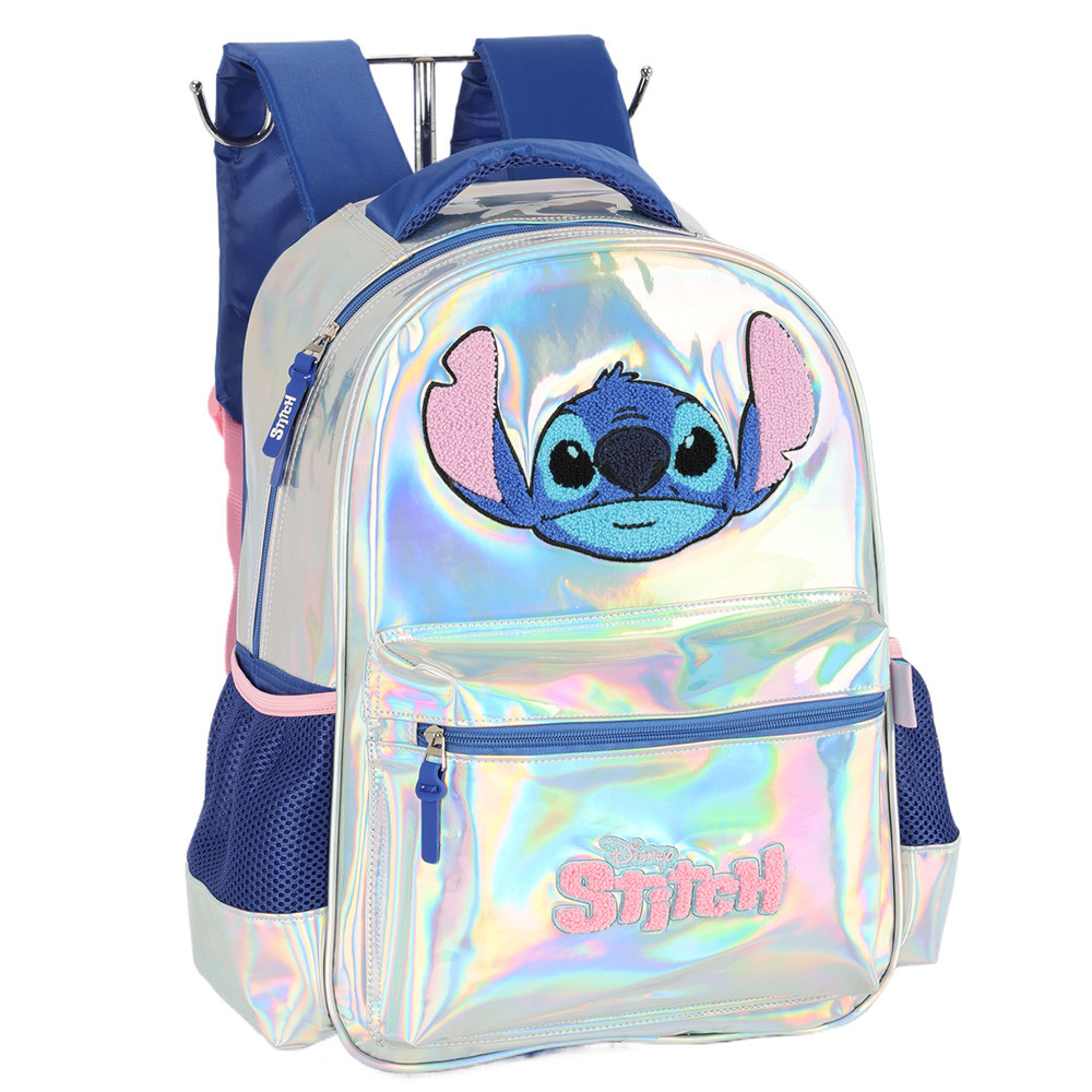 Mochila De Costas Escolar Infantil Stitch Disney Metálico