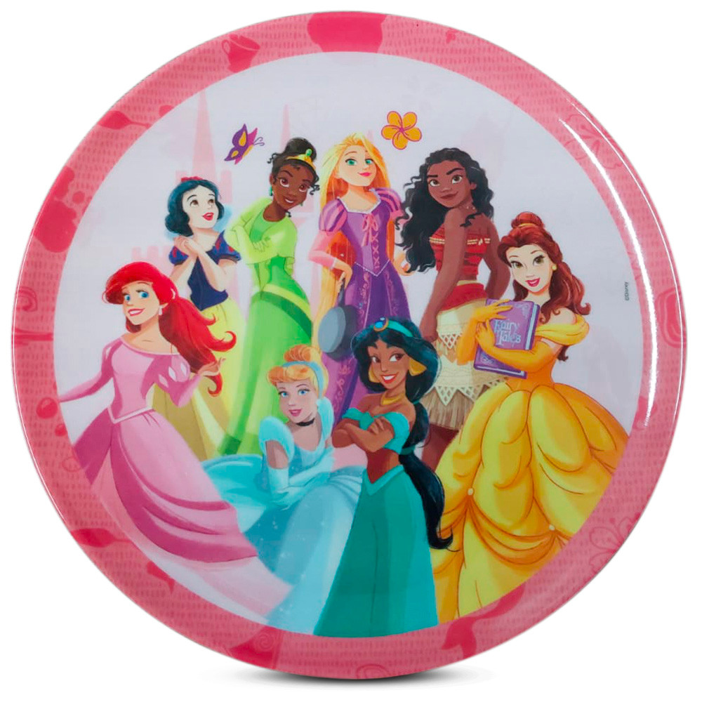 Kit 4 Pratos Rasos Infantil Disney Princesas Melamine 20cm