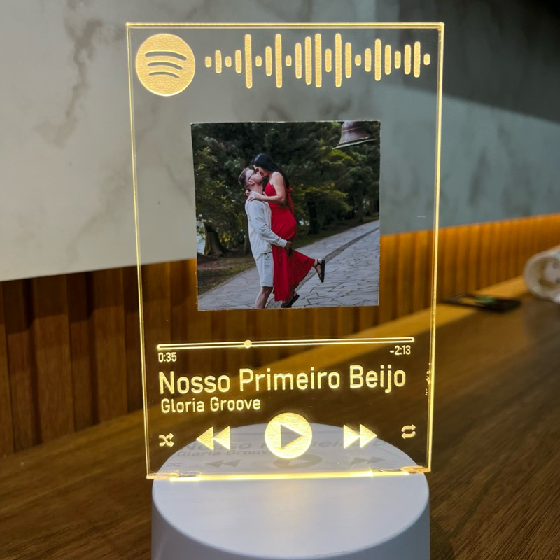 Luminária Personalizada com Foto e Música – Estilo Spotify com Gravação a Laser
