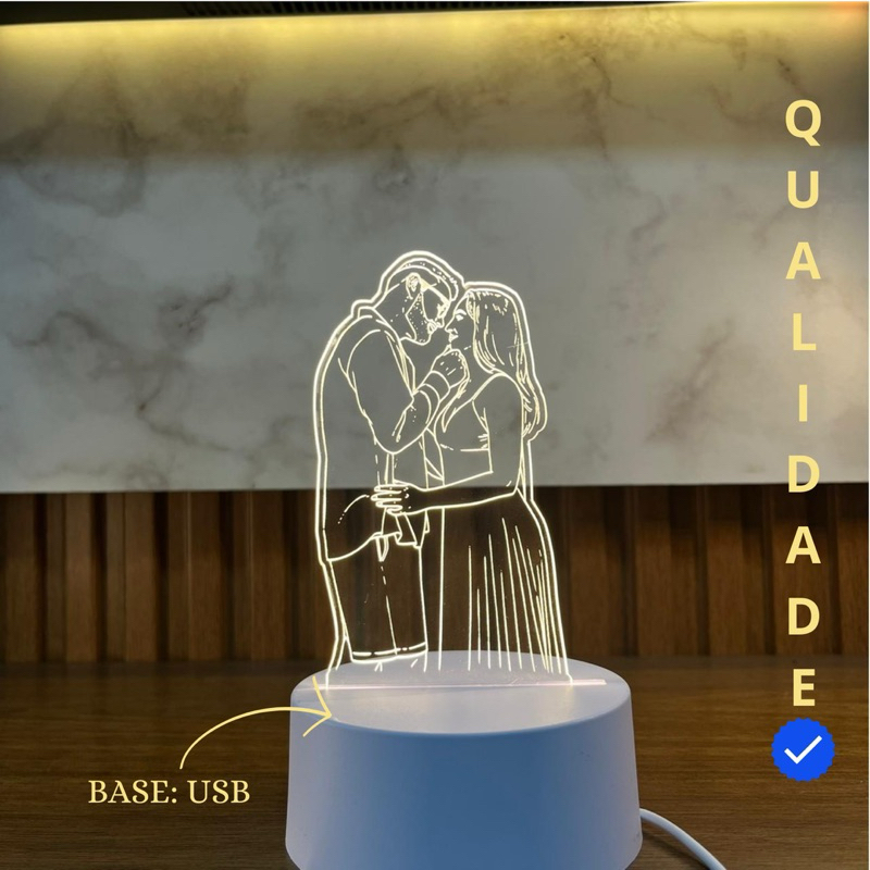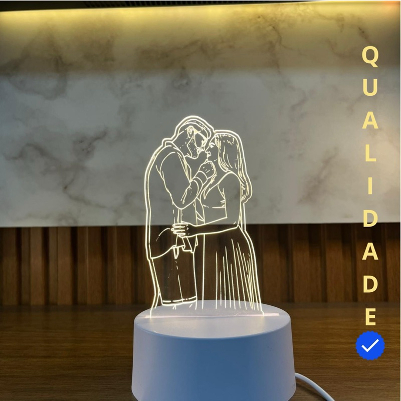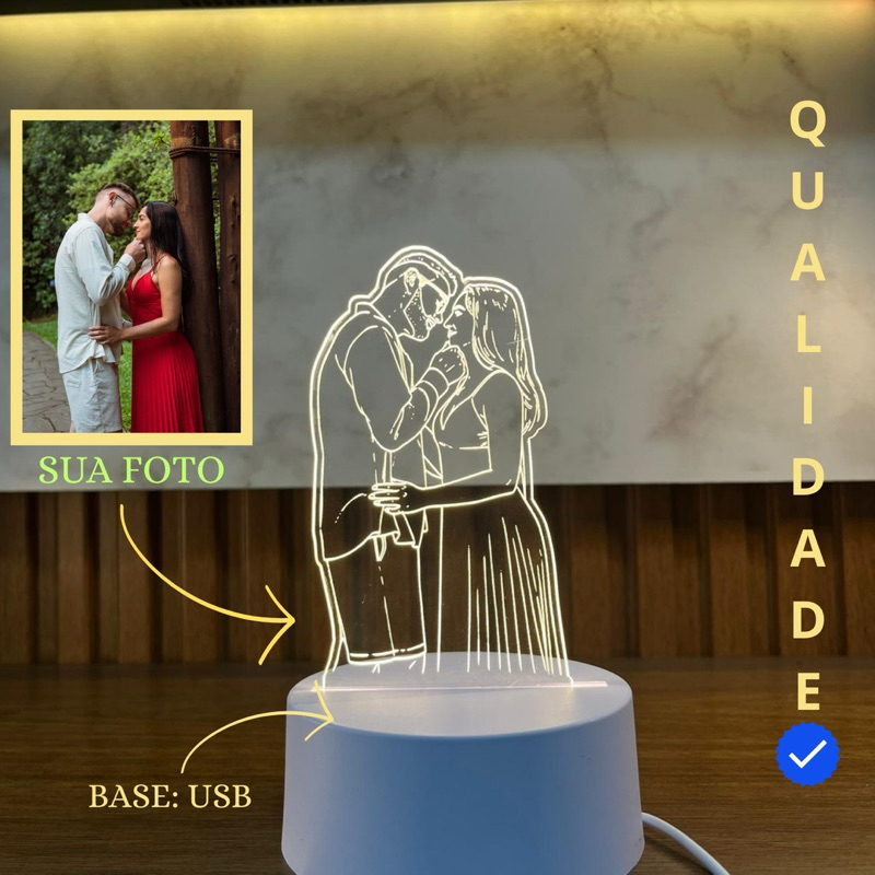 Luminária 3D Personalizada com Sua Foto – Presente Romântico LED Casal, Namorados, Aniversário e Datas Especiais