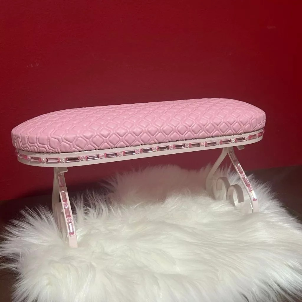 Apoio de Mão - Apoiador de Mão MDF Metal Prime Strass Rosa - Nail Designer Manicure - Unha