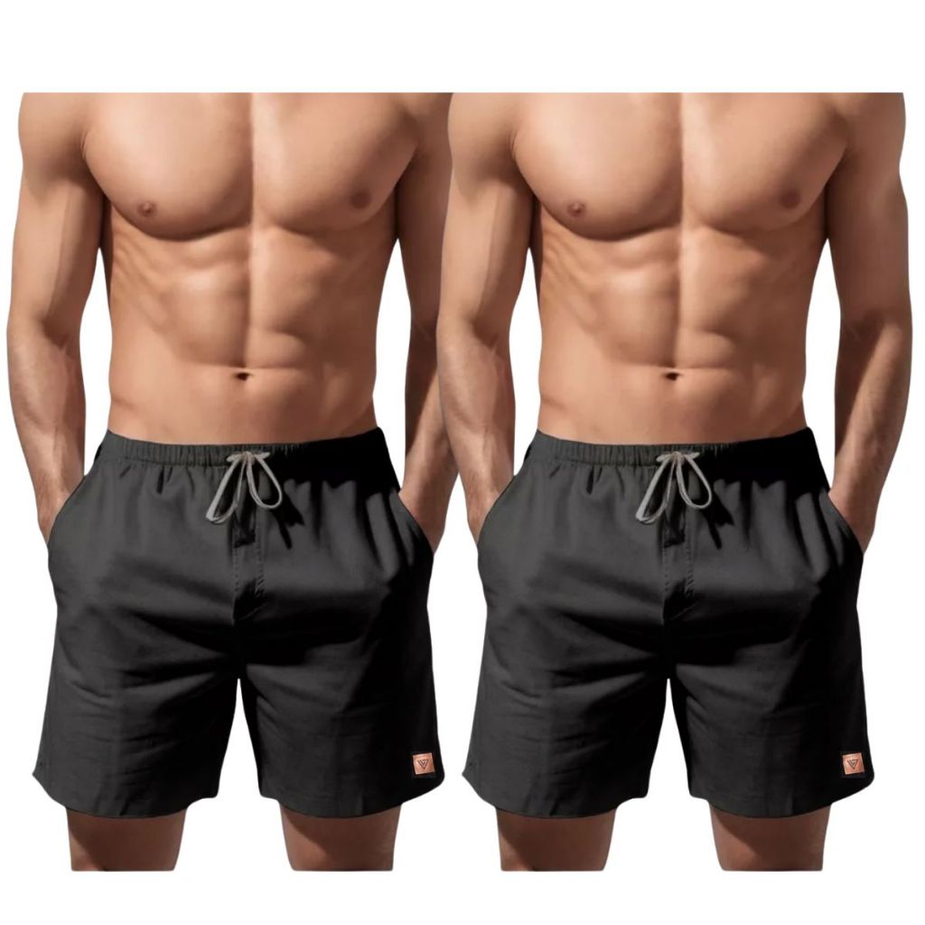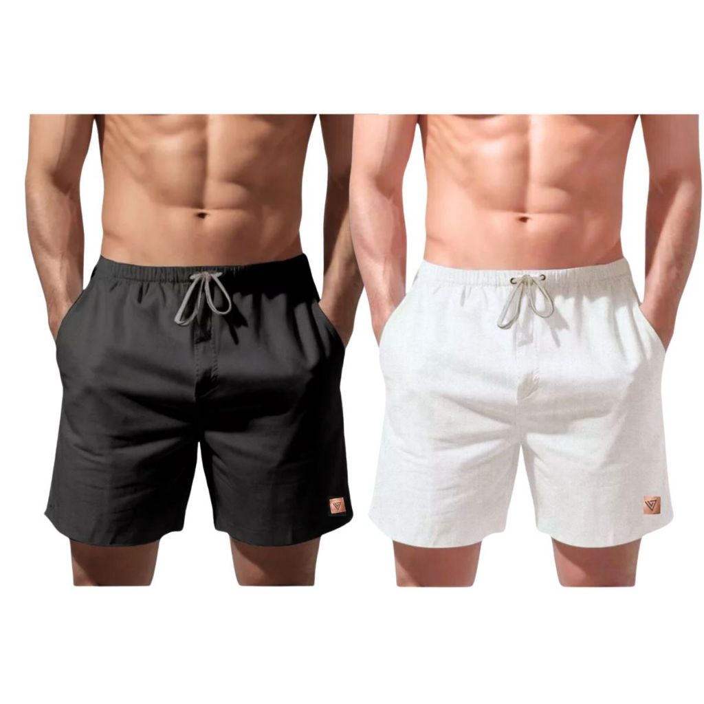 Kit 2 Bermudas Shorts de Linho Masculino Mauricinho Moda Luxo Verão Casual Social Barato