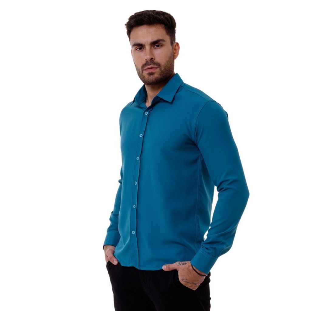 Camisa Social Slim Fit Premium Manga Longa Moda Estilo Camiseta