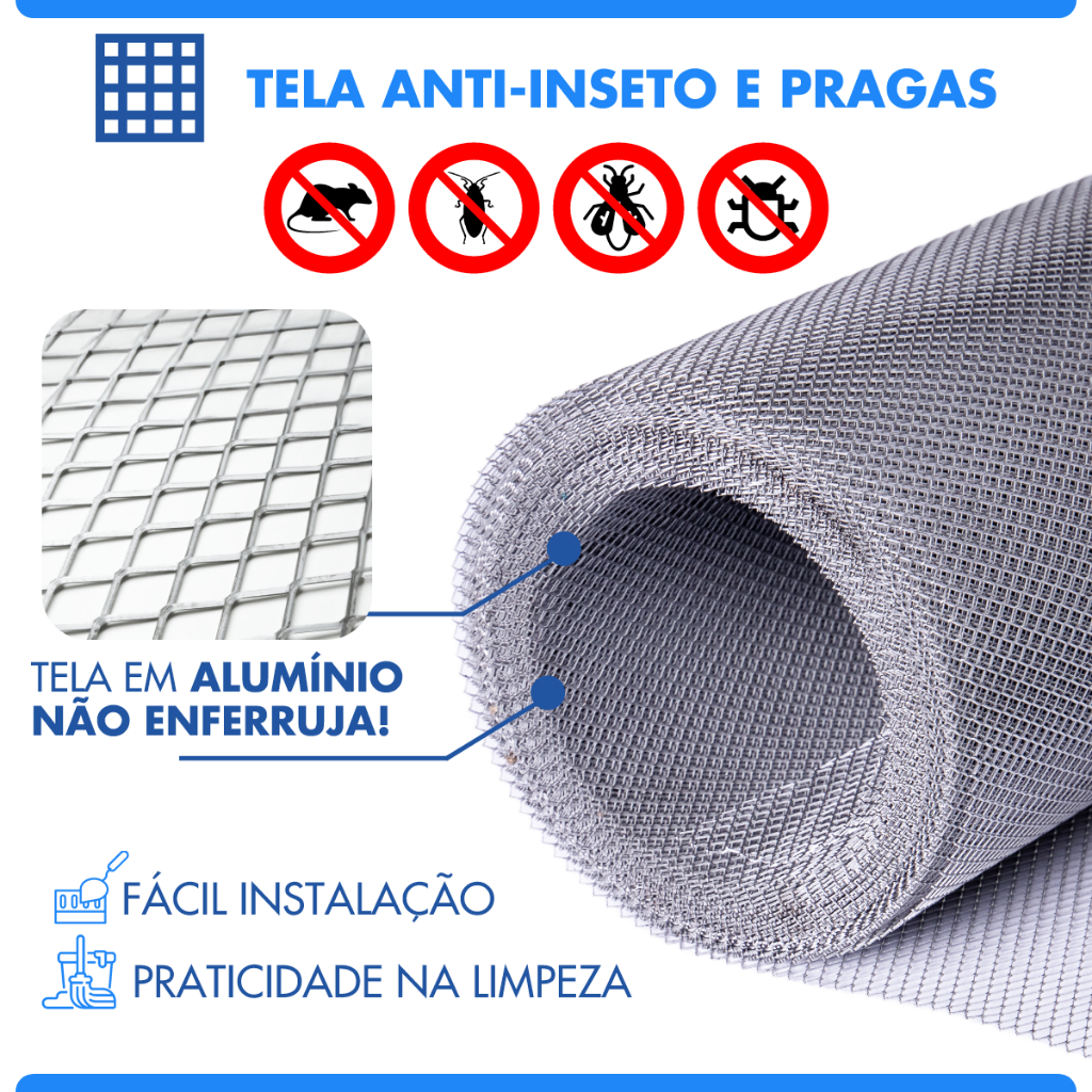 Tela Anti Insetos Calha Ralo Parabólica Tuning Alumínio 100cm 150cm 200cm 300cm 400cm 500cm