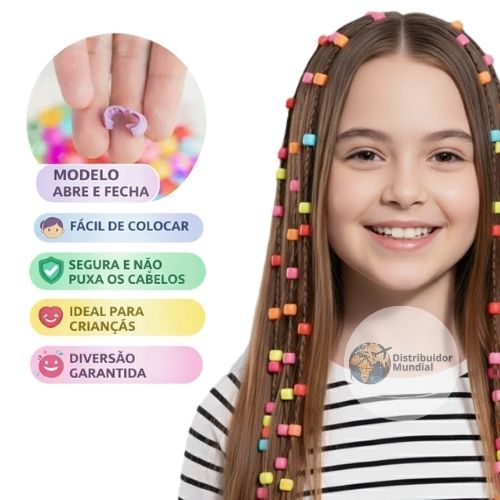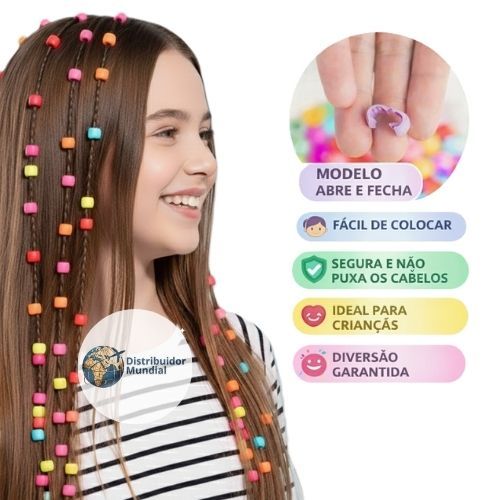 Kit 240 Tererê Para Cabelo Infantil Abre e Fecha Acessórios Menina Anel Trança Várias Cores