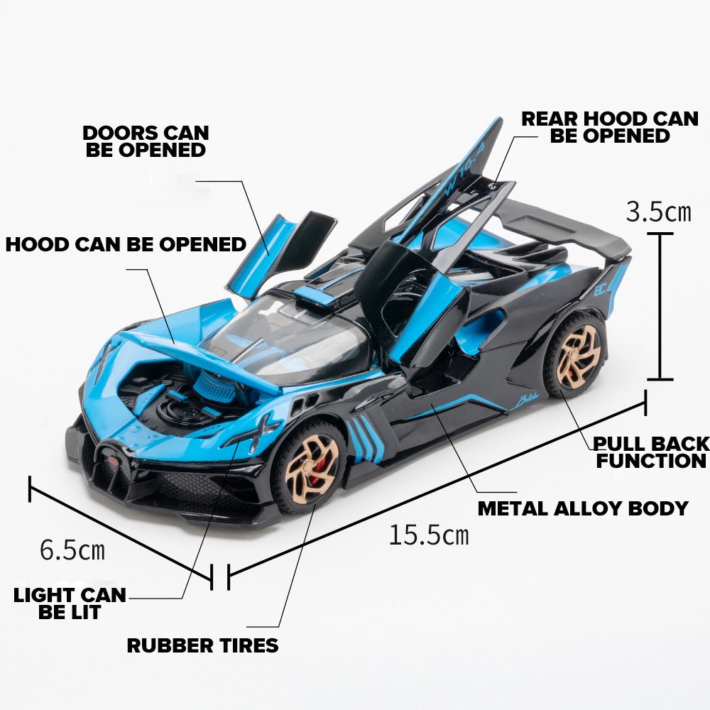 KLT 1 : 32 Bugatti Bolide Supercarro Metal Liga De Brinquedos Modelo De Carro De Brinquedo Diecast Veículo Para Meninos Simulação De Som Efeito Leve Coleção De Hobbies De Presente
