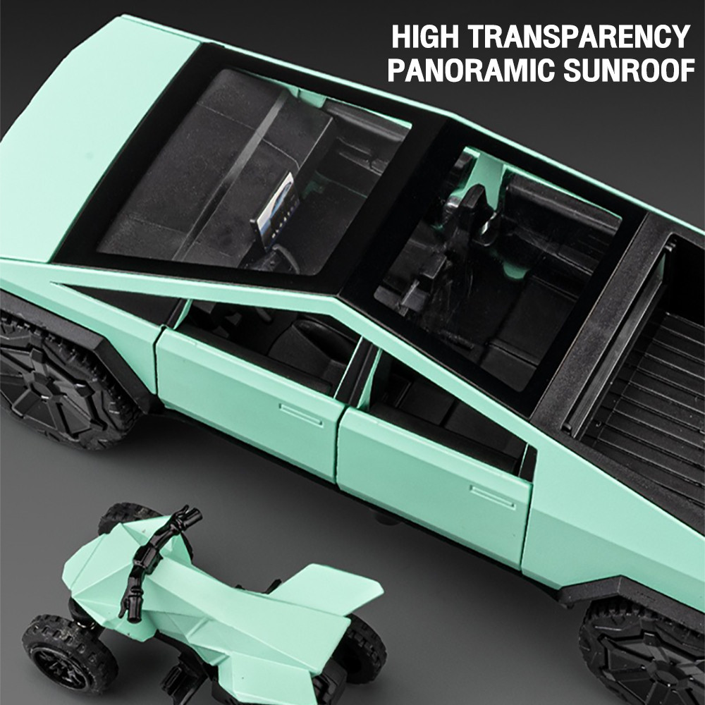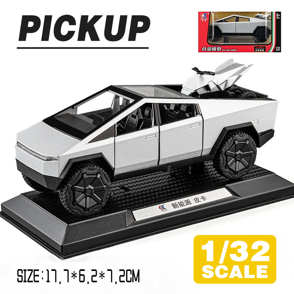 KLT 1 : 32 Tesla Cybertruck Pickup Metal Alloy Toys Modelo De Carro De Liga Metálica Diecast Veículo Para Meninos Simulação De Som Efeito De Luz Coleção De Hobbies Presentes