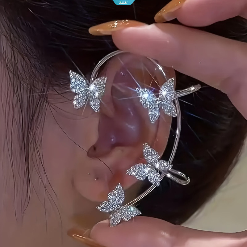 2 Pçs/Set Borboleta Brincos Punhos De Orelha Alpinista Envoltório Em Torno Para Mulheres Fada Direita Esquerda Sem Pierc