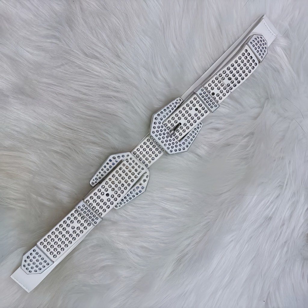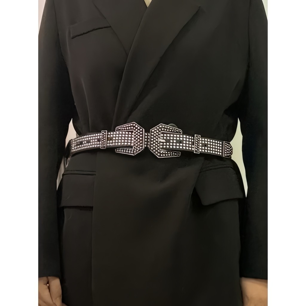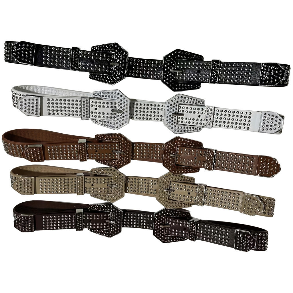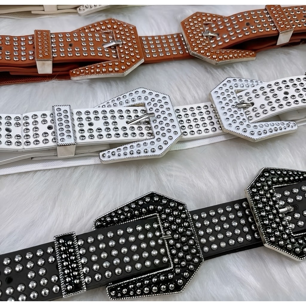 Cinto feminino Coutry elástico com duas fivelas 2.8cm Rebite Incrustado fivela brilho