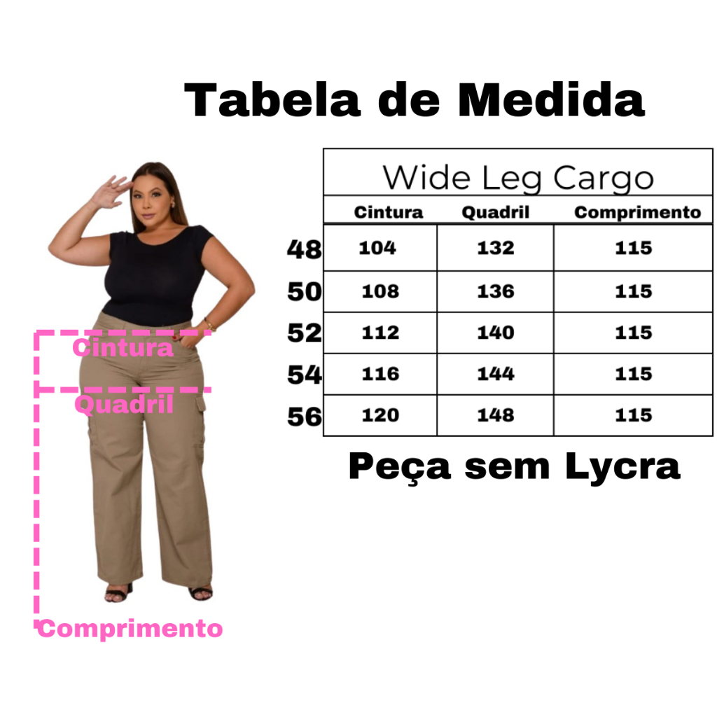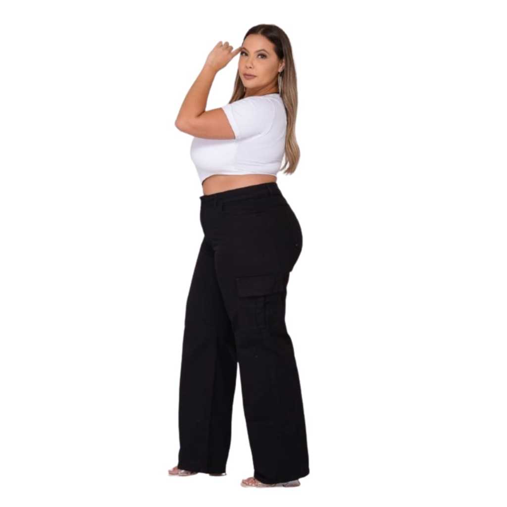 Calça Jeans Wide Leg Cargo Colorida Plus Size Feminina Sem Lycra